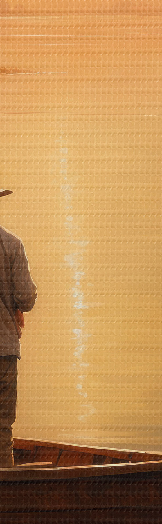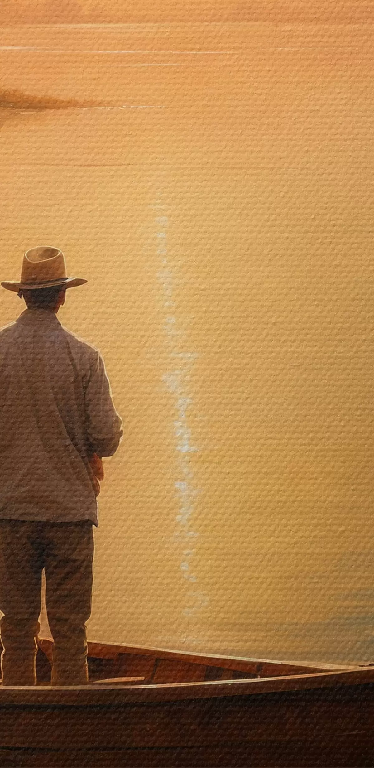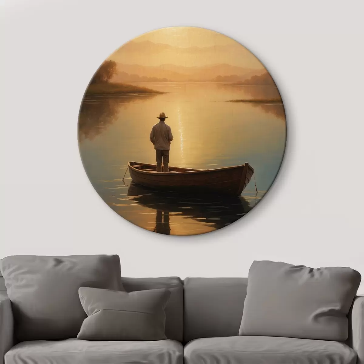 Ronde schilderijen Man in een boot in het midden van een meer Nr r41770