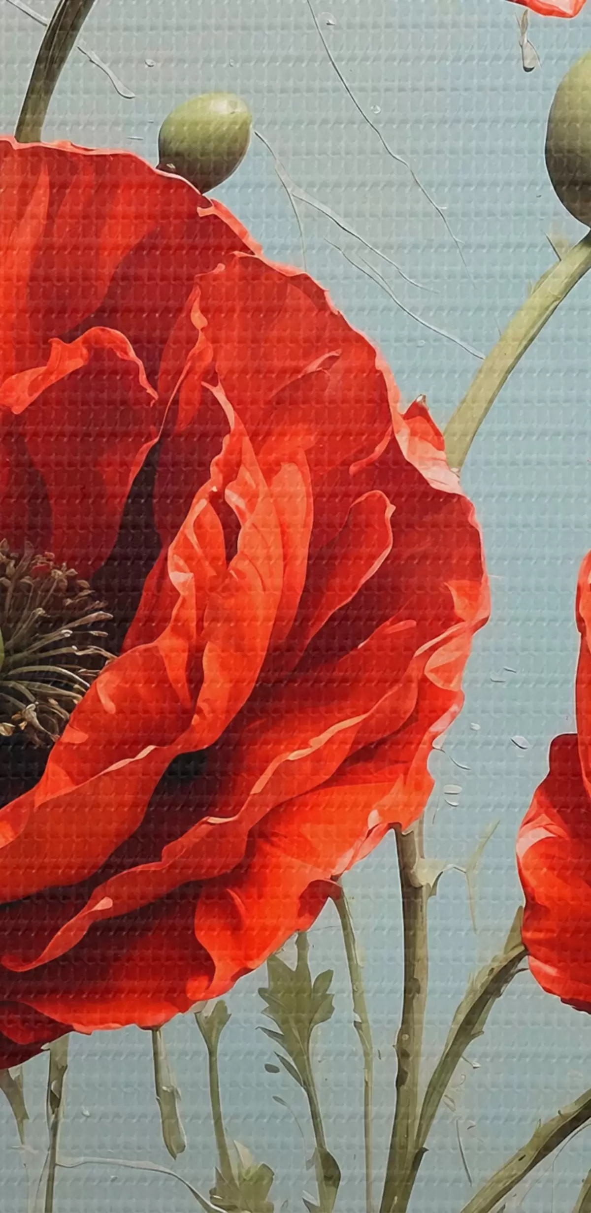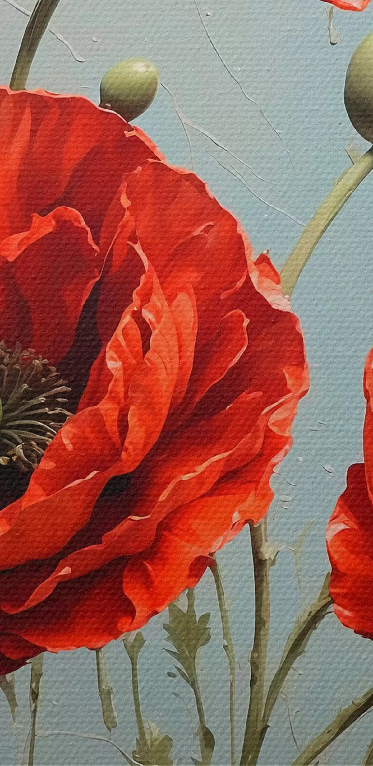 Ronde schilderijen Klaprozen op blauwe achtergrond Nr r41773