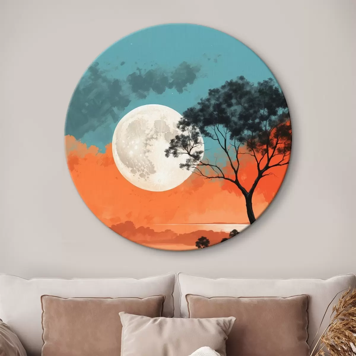Ronde schilderijen Boom in het midden van een meer op de achtergrond van de maan r41775
