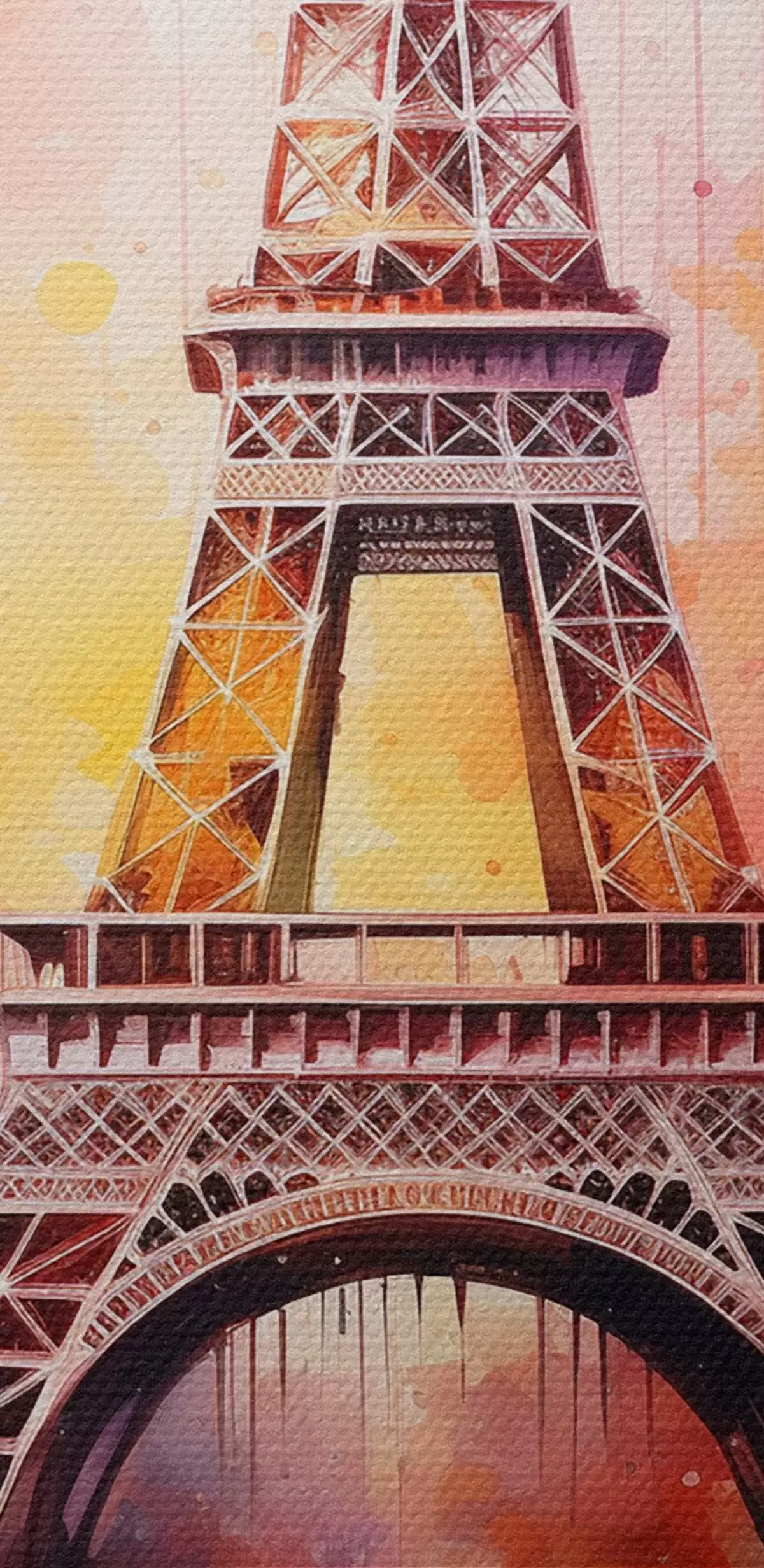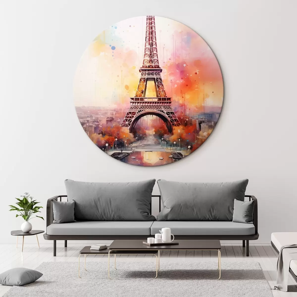 Ronde schilderijen Parijs op een achtergrond van waterverfspatten Nr r42081