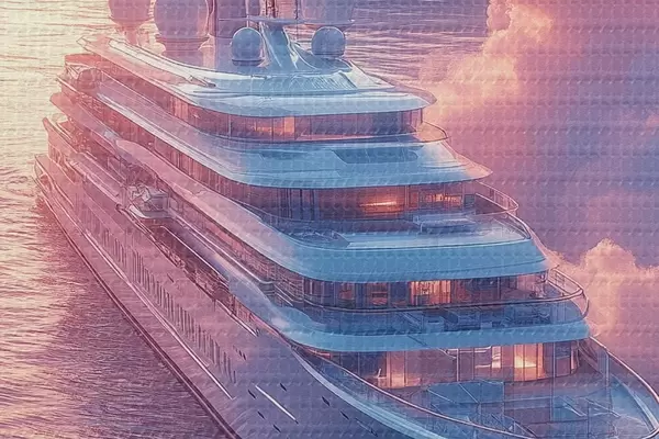 Ronde schilderijen Cruiseschip tegen een roze zonsondergang Nr r42085