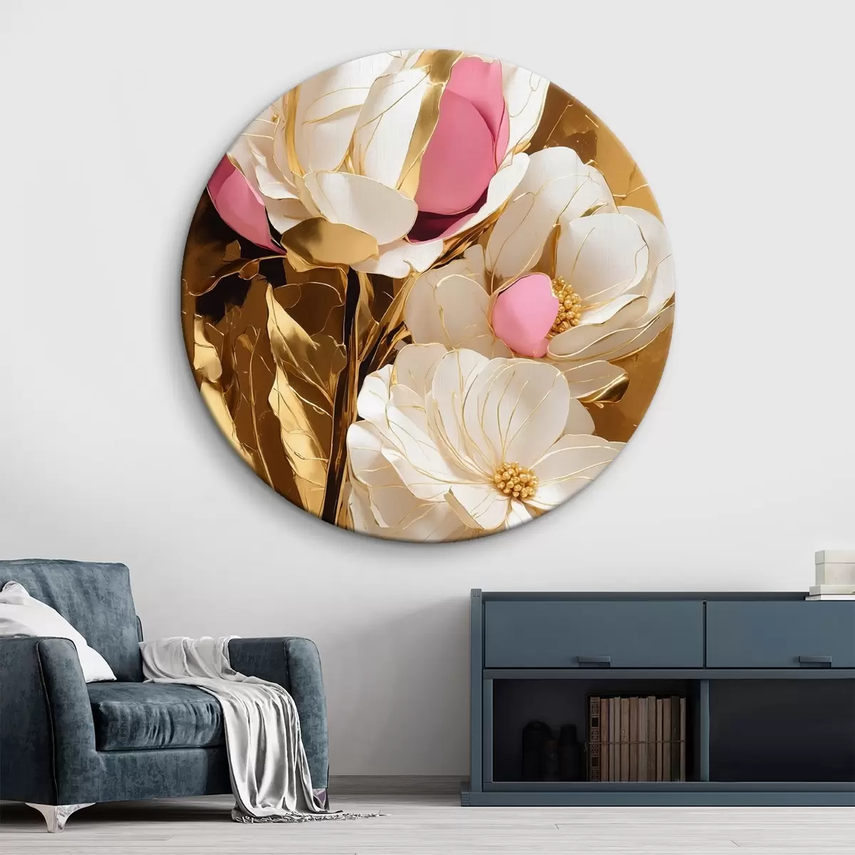Ronde schilderijen Bloemen op gele achtergrond r42090