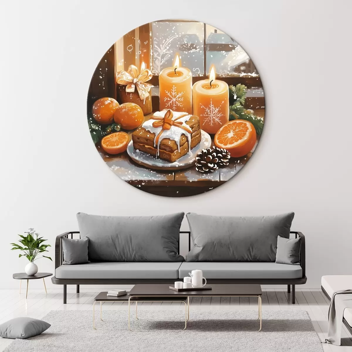 Ronde schilderijen Kerstcake, mandarijnen, kaarsen r42101