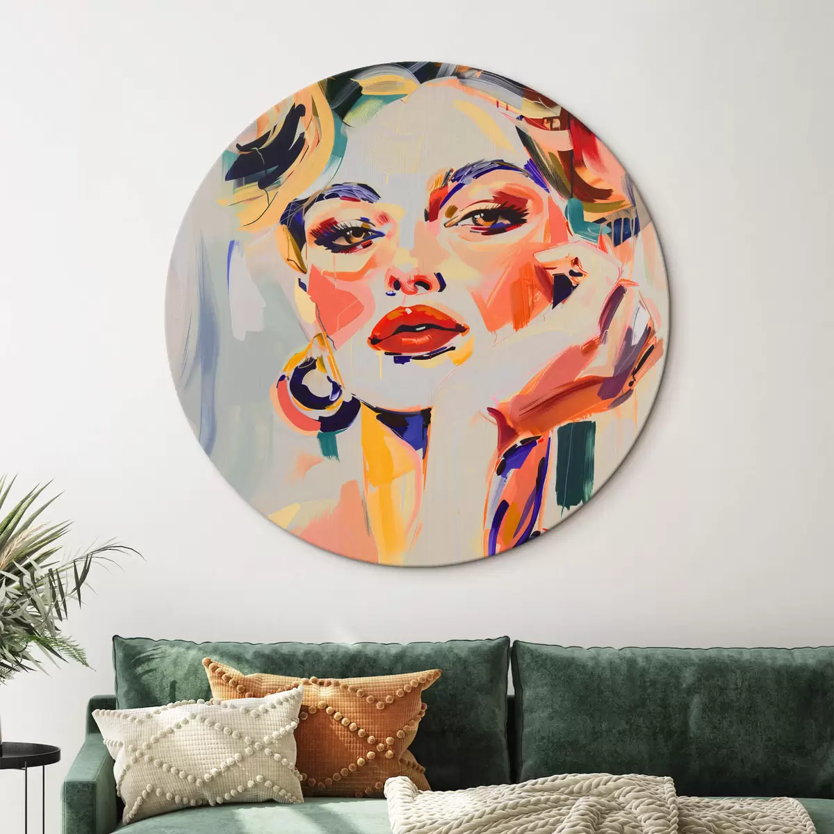 Ronde schilderijen Portret van een vrouw in veelkleurige streken r42111