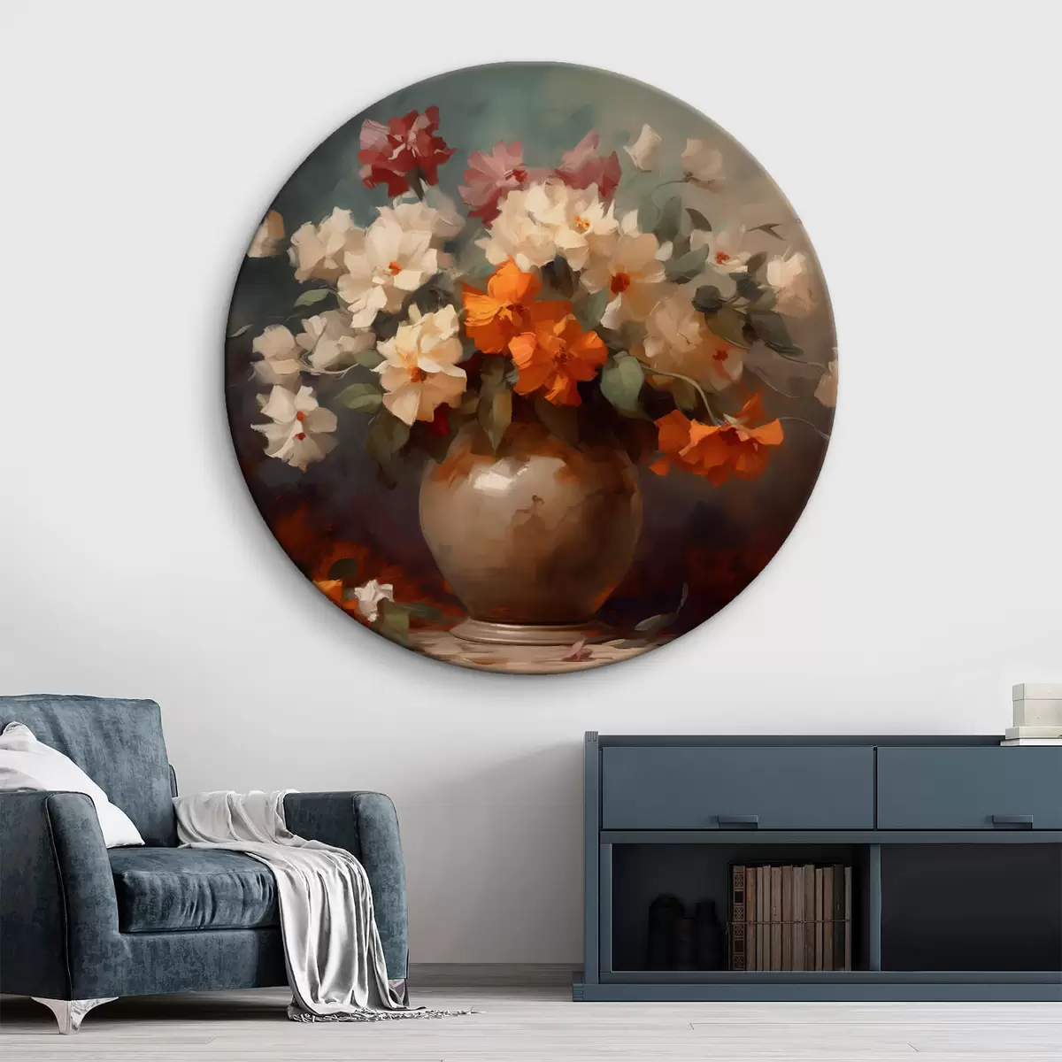 Ronde schilderijen Boeket bloemen in een vaas Nr r42113