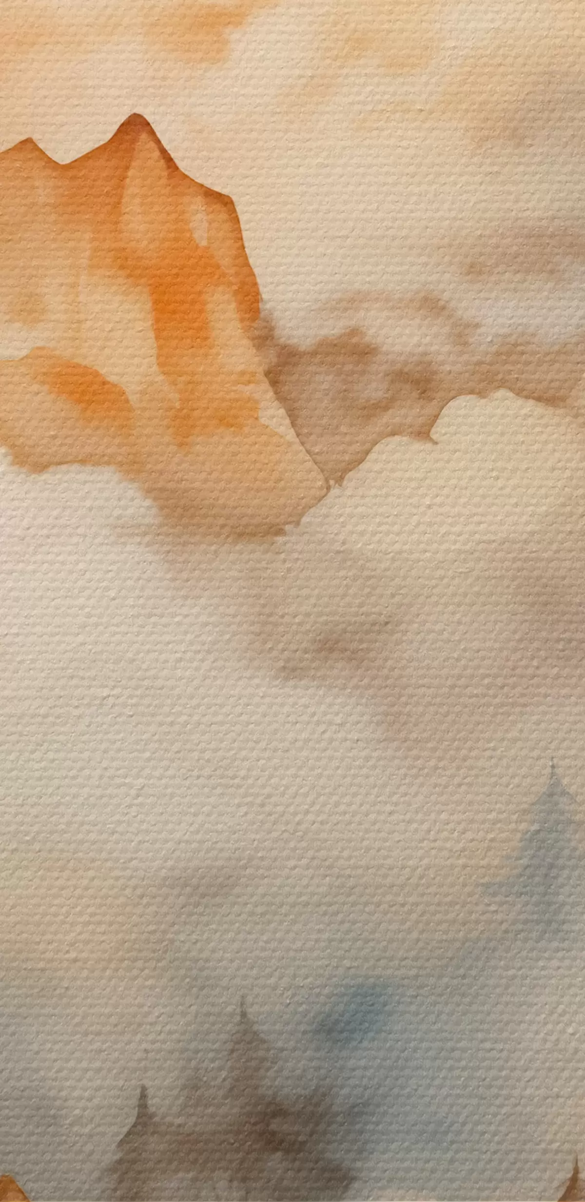 Ronde schilderijen Bos en bergen imitatie van aquarel, oranje tinten Nr r42119