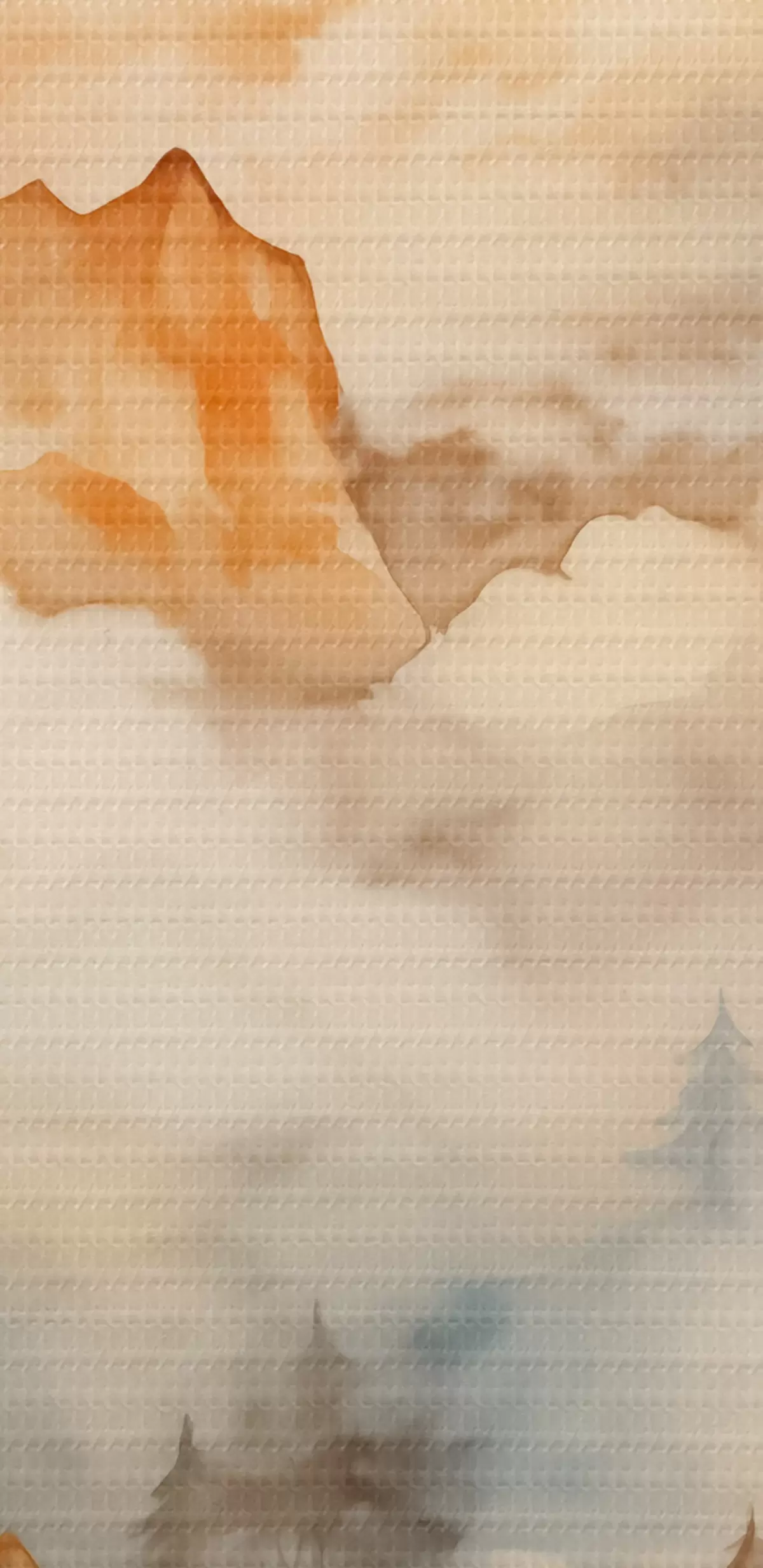Ronde schilderijen Bos en bergen imitatie van aquarel, oranje tinten r42119