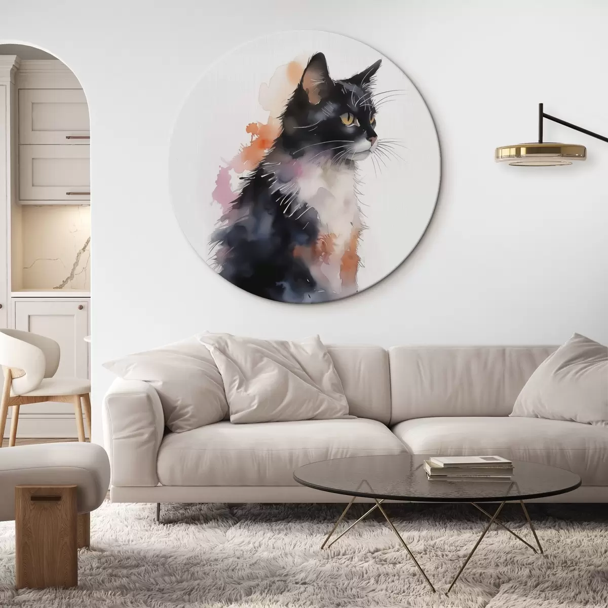 Ronde schilderijen Kat imitatie aquarel r42121