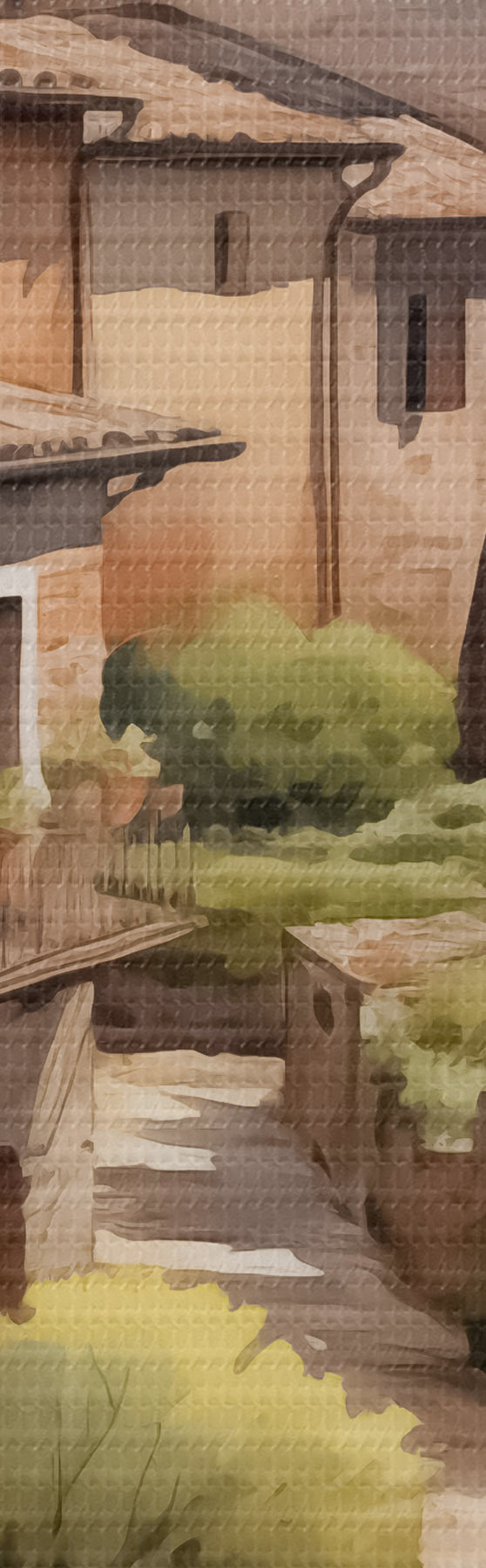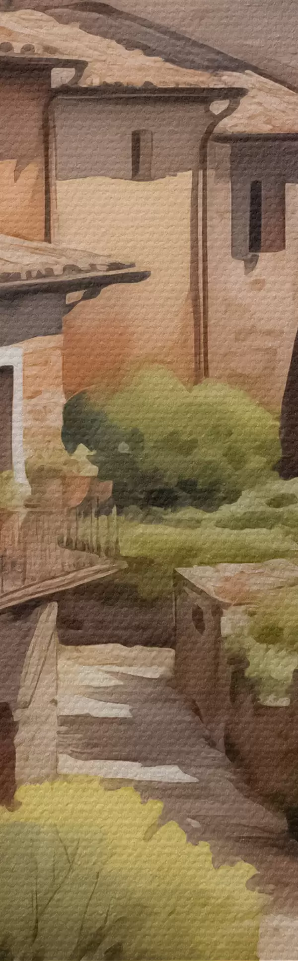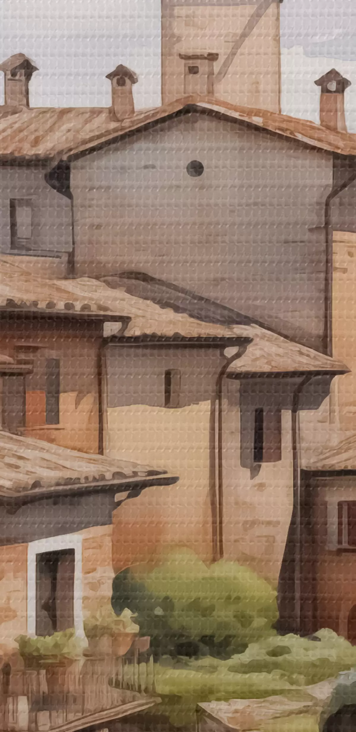 Ronde schilderijen Italiaanse buitenwijk straat imitatie aquarel Nr r42135