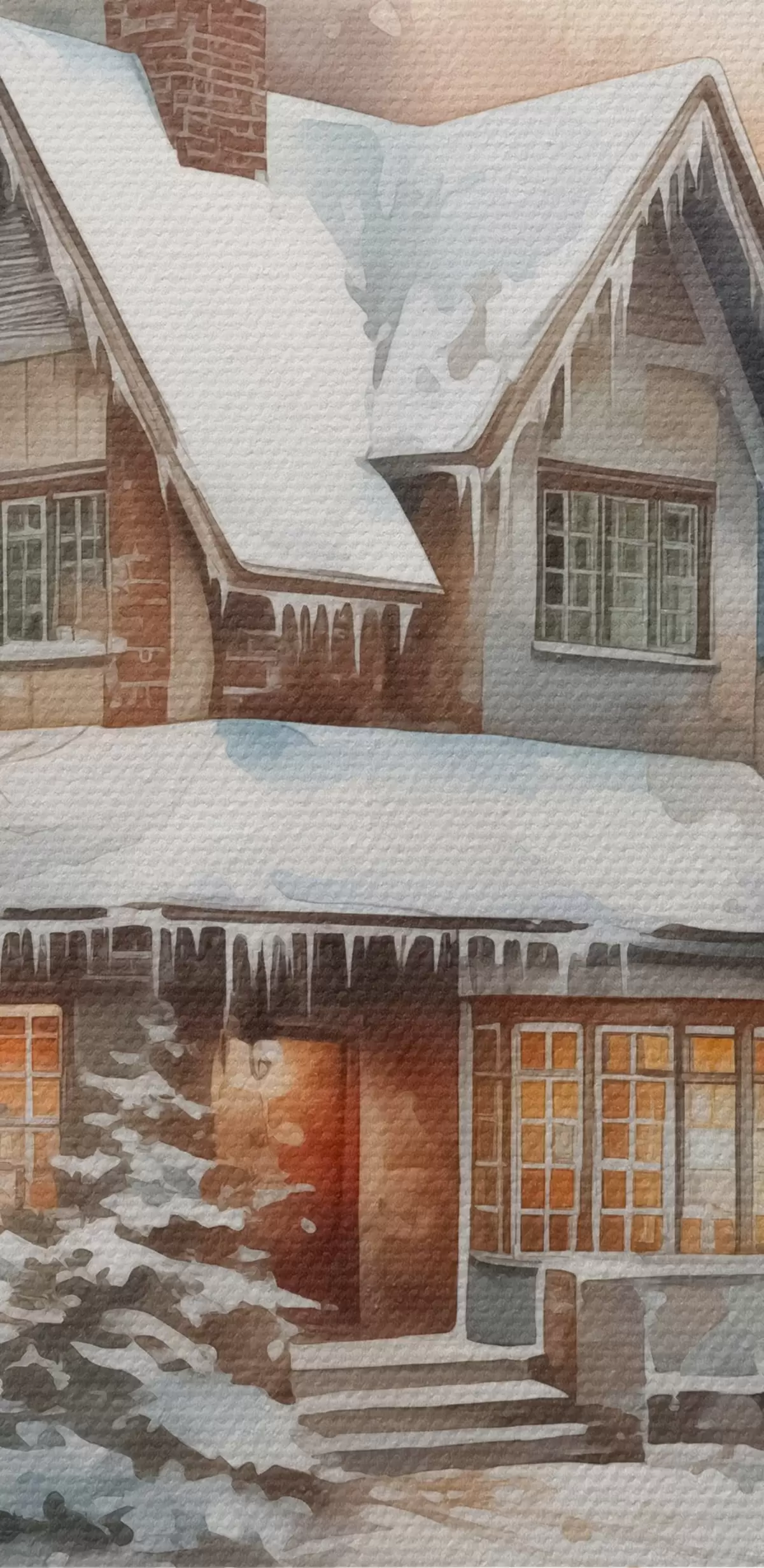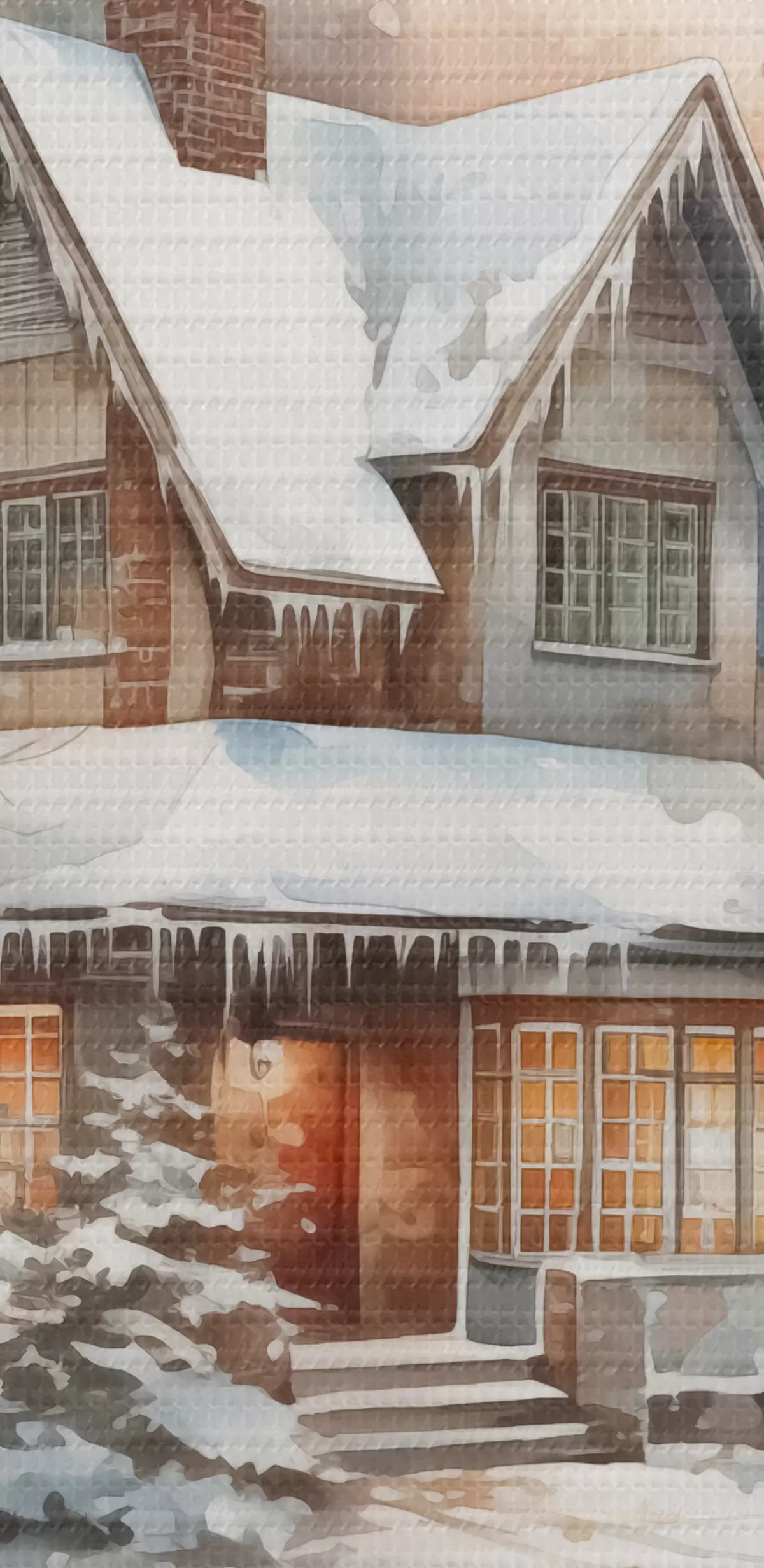Ronde schilderijen Huis in een besneeuwd bos imitatie van aquarel r42137