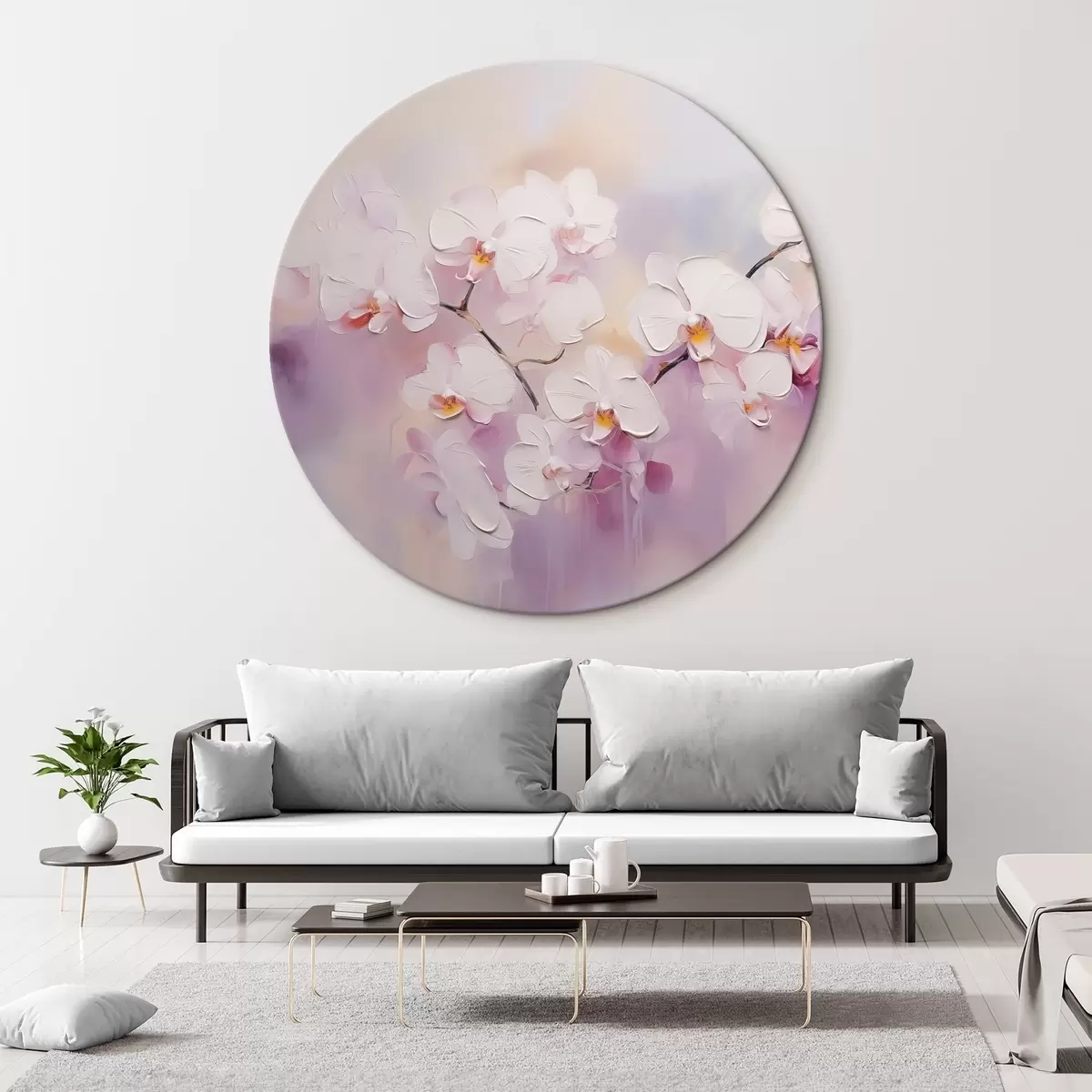 Ronde schilderijen Tak met witte orchideeën imitatie van schilderij Nr r42141