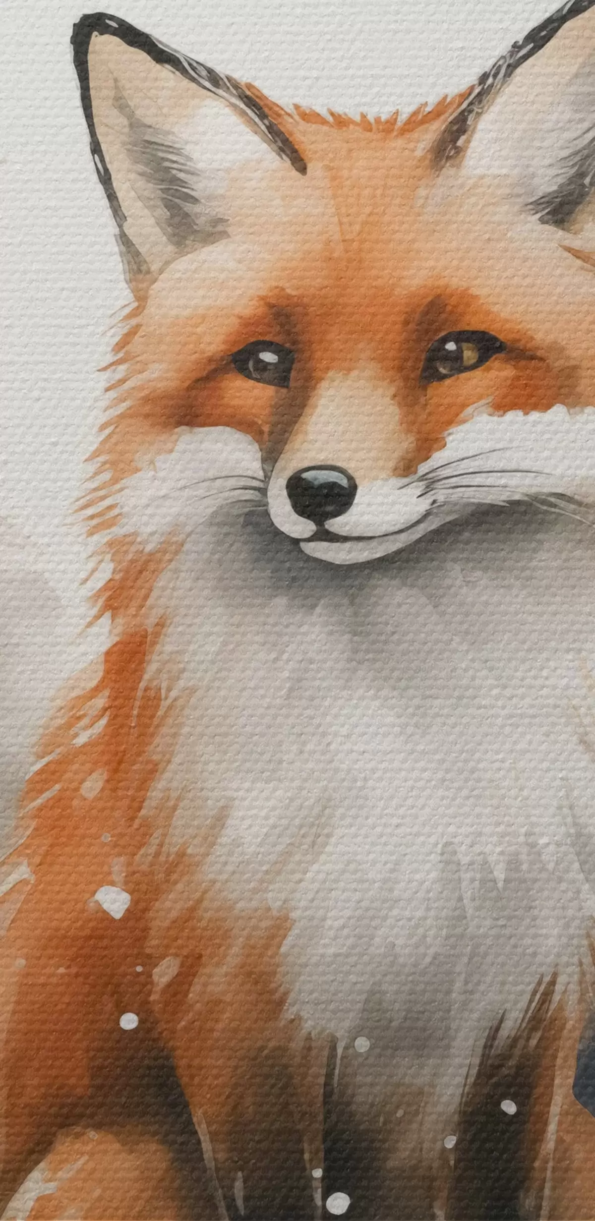 Ronde schilderijen Vossenwelp in een besneeuwd bos imitatie van aquarel Nr r42146