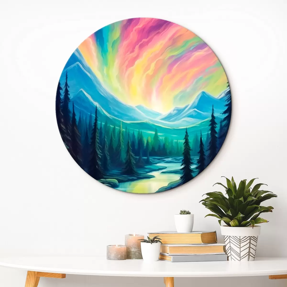 Ronde schilderijen Noorderlicht boven het berglandschap Nr r42150