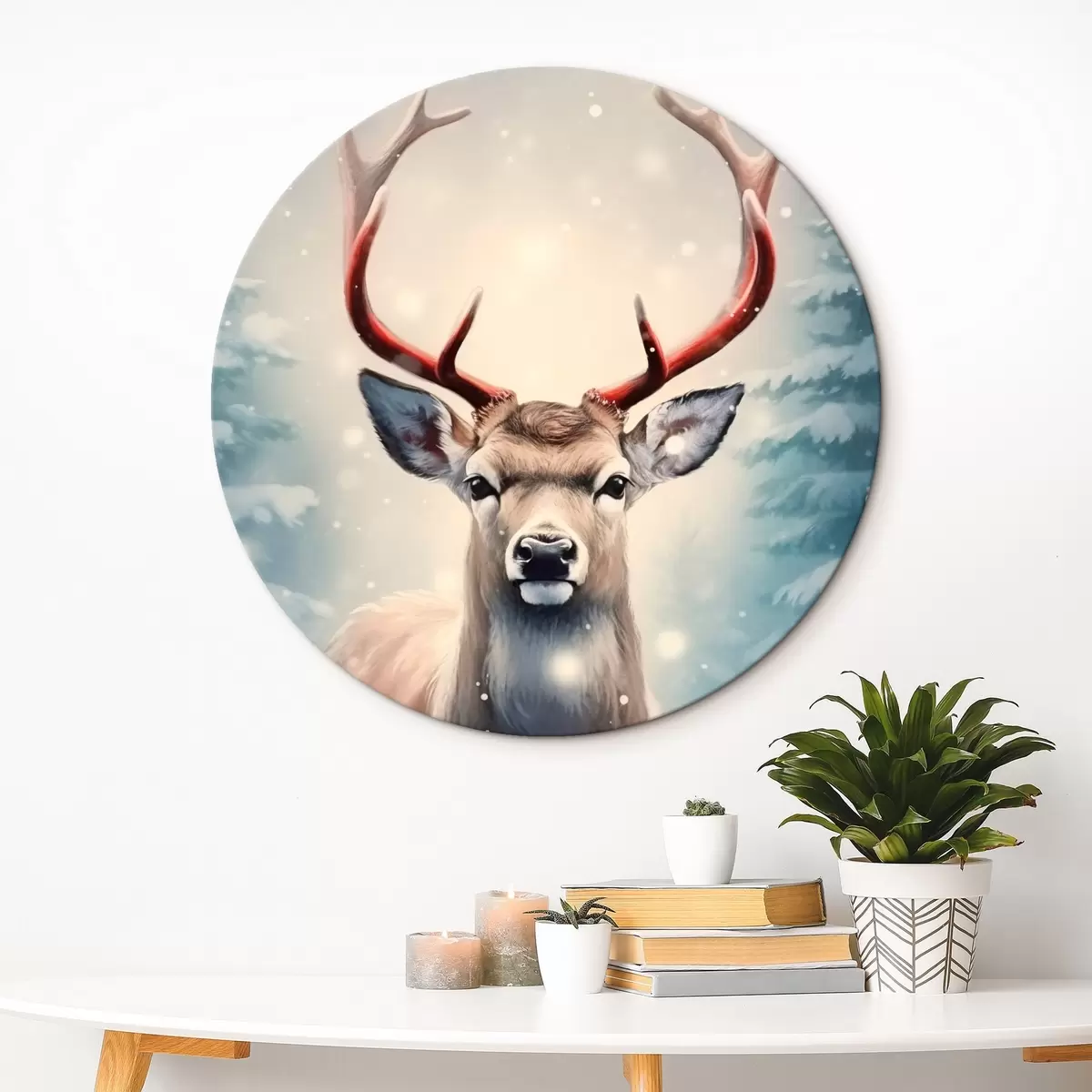 Ronde schilderijen Winter rendieren Nr r42169