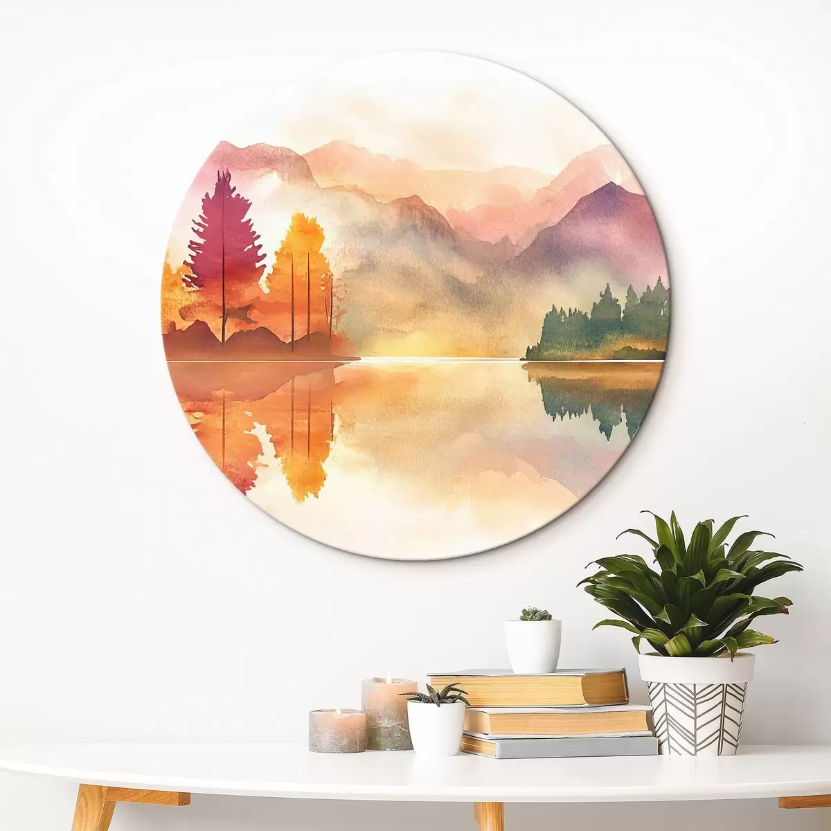 Ronde schilderijen Bergen in aquarelstijl r42183
