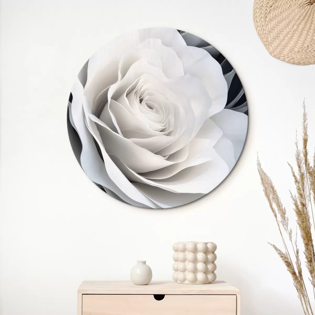 Ronde schilderijen Witte roos Nr r42187