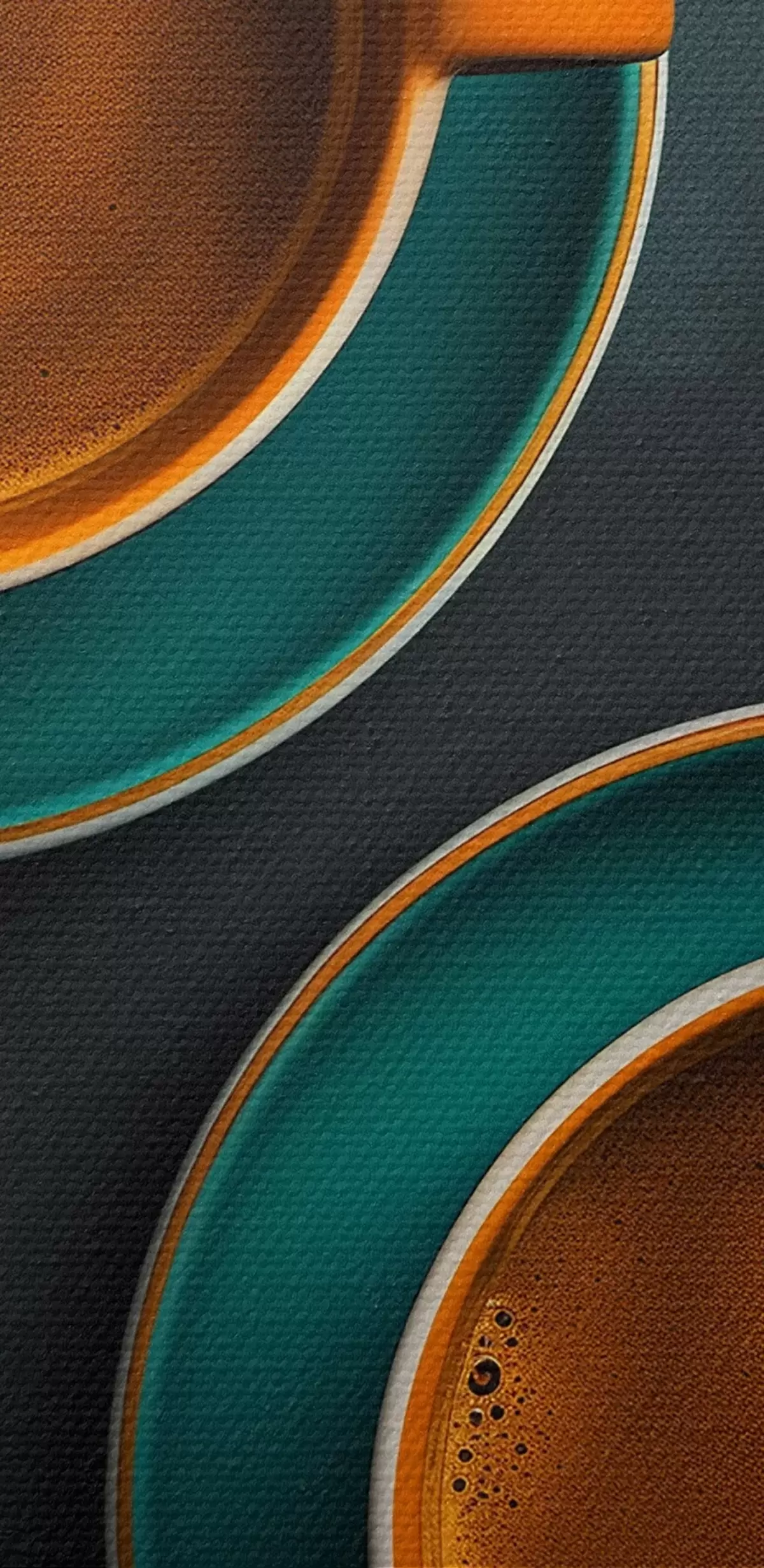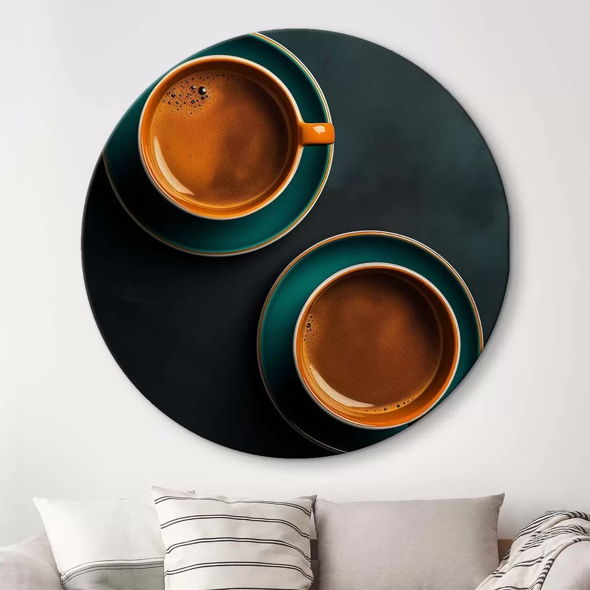 Ronde schilderijen Twee kopjes koffie op een donkere achtergrond Nr r42190