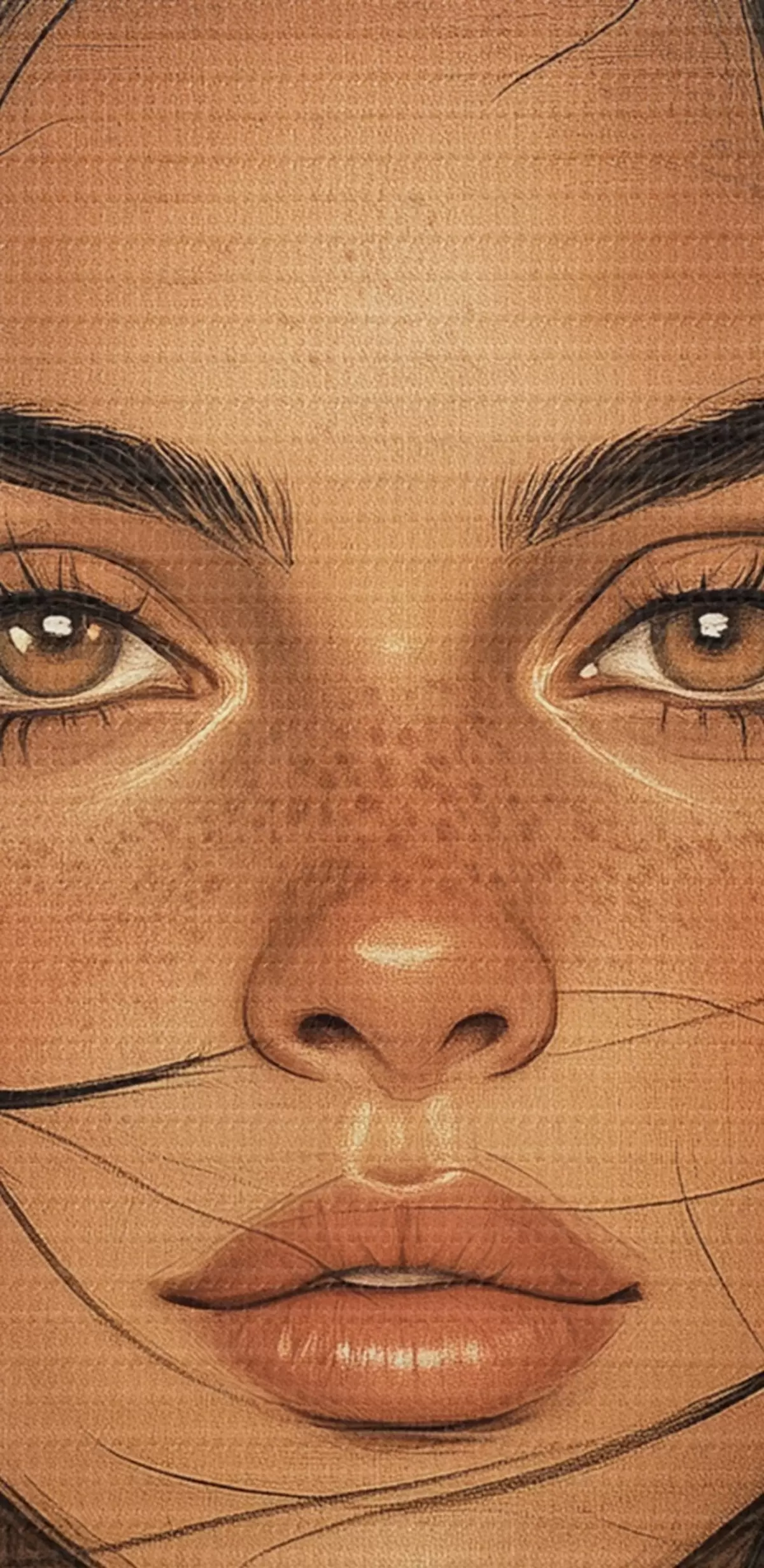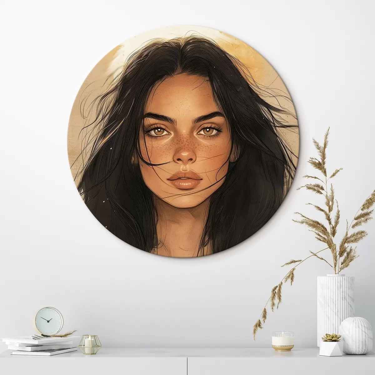 Ronde schilderijen Vrouwenportret, tribale stijl, beige kleuren Nr r42197