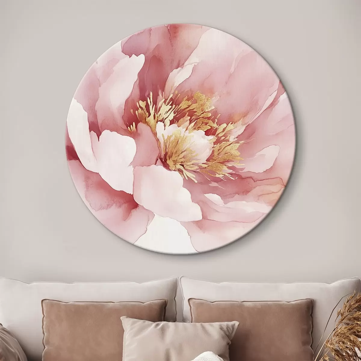 Ronde schilderijen Roze pioenbloem, aquarelstijl Nr r42203
