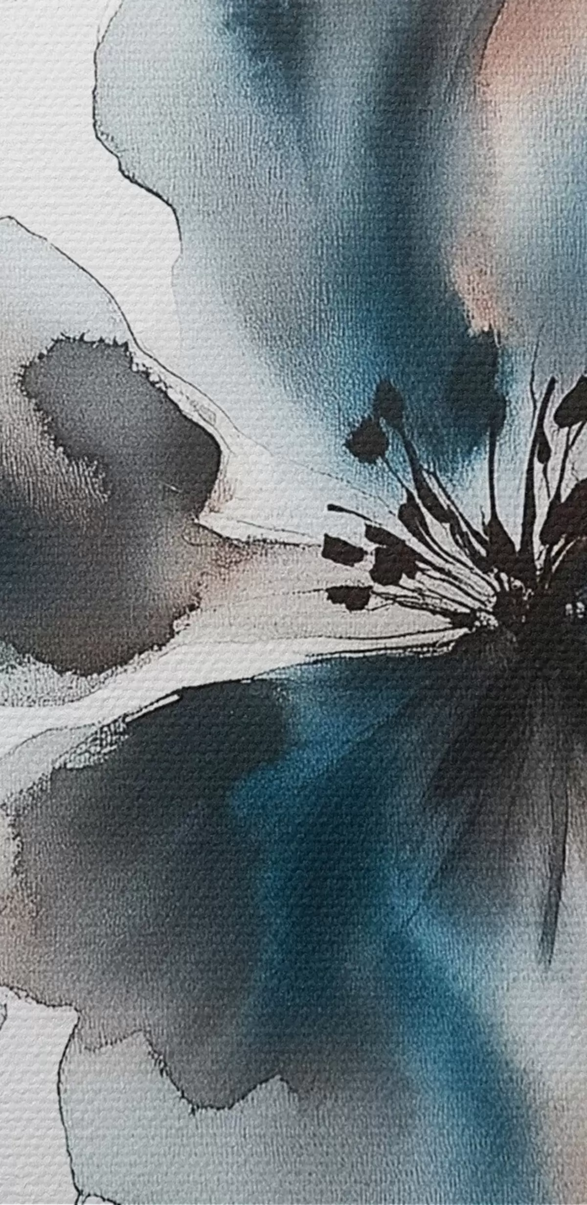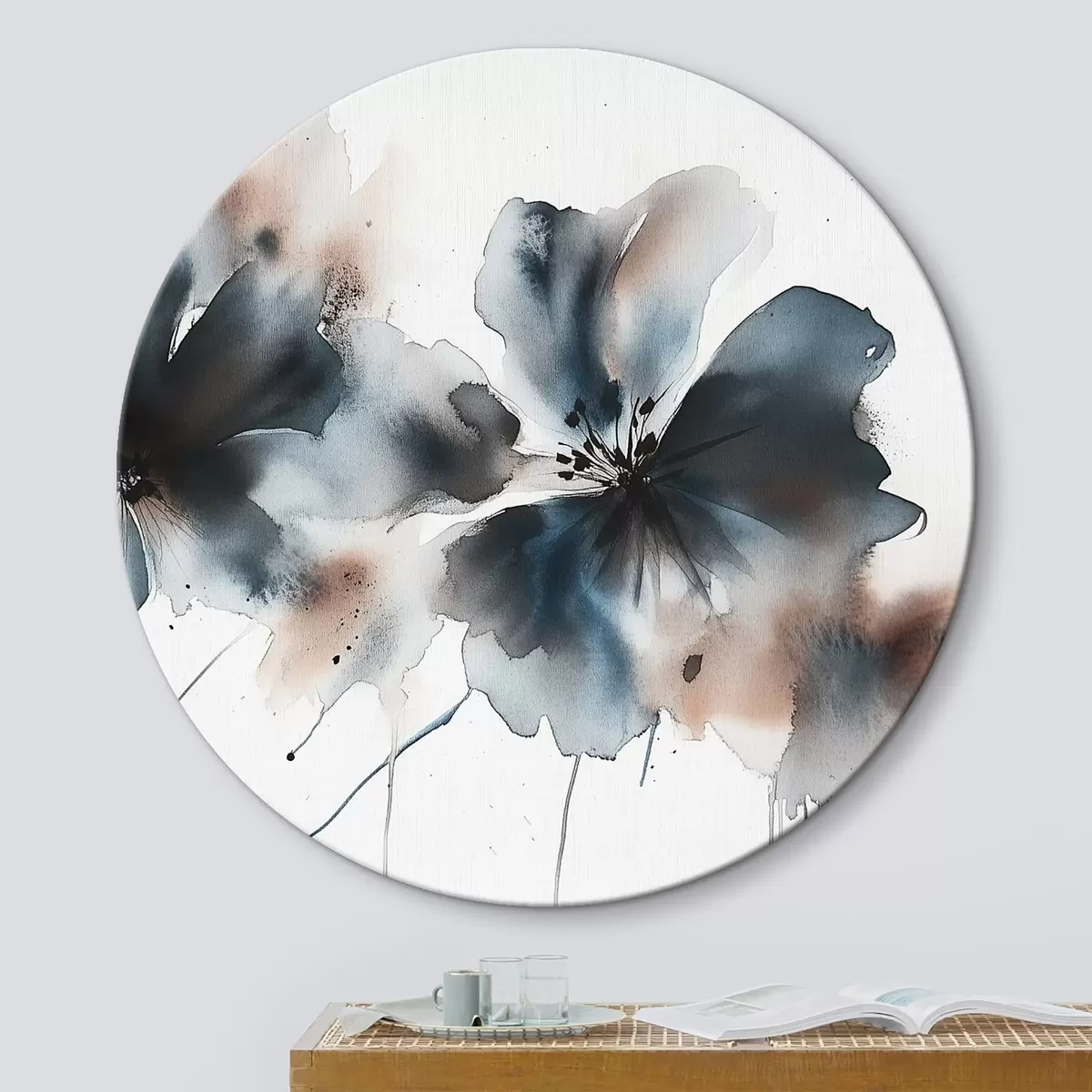 Ronde schilderijen Aquarel stijl bloemen, blauwe kleuren Nr r42208