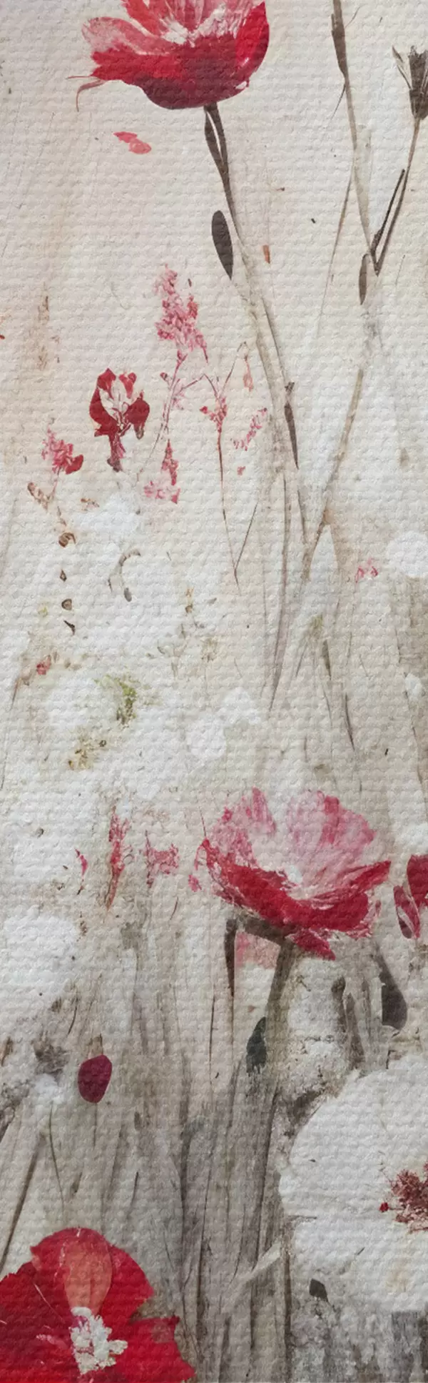 Ronde schilderijen Abstracte imitatie van olieverfschilderij een veld van rode en witte klaprozen en madeliefjes bloemen tegen een grijze texturale achtergrond Nr r42213