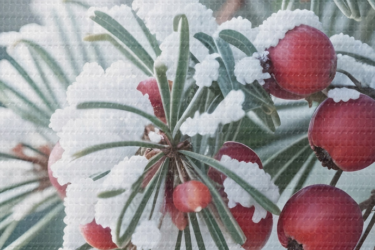 Ronde schilderijen Besneeuwde dennentak met rode bessen , winterscène Nr r42238