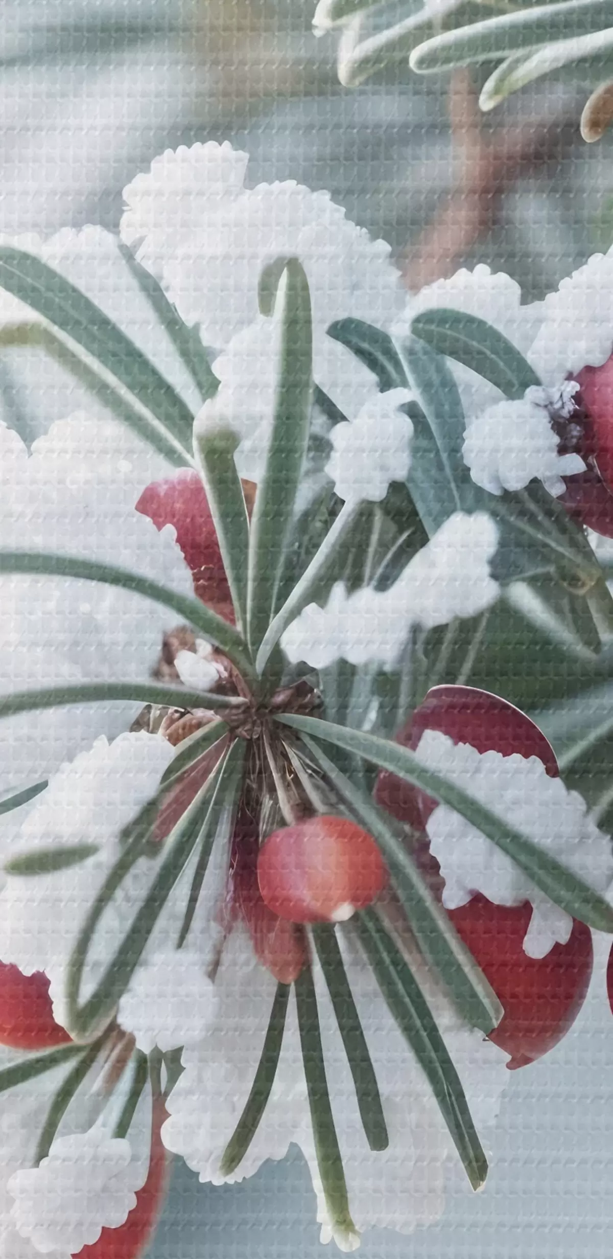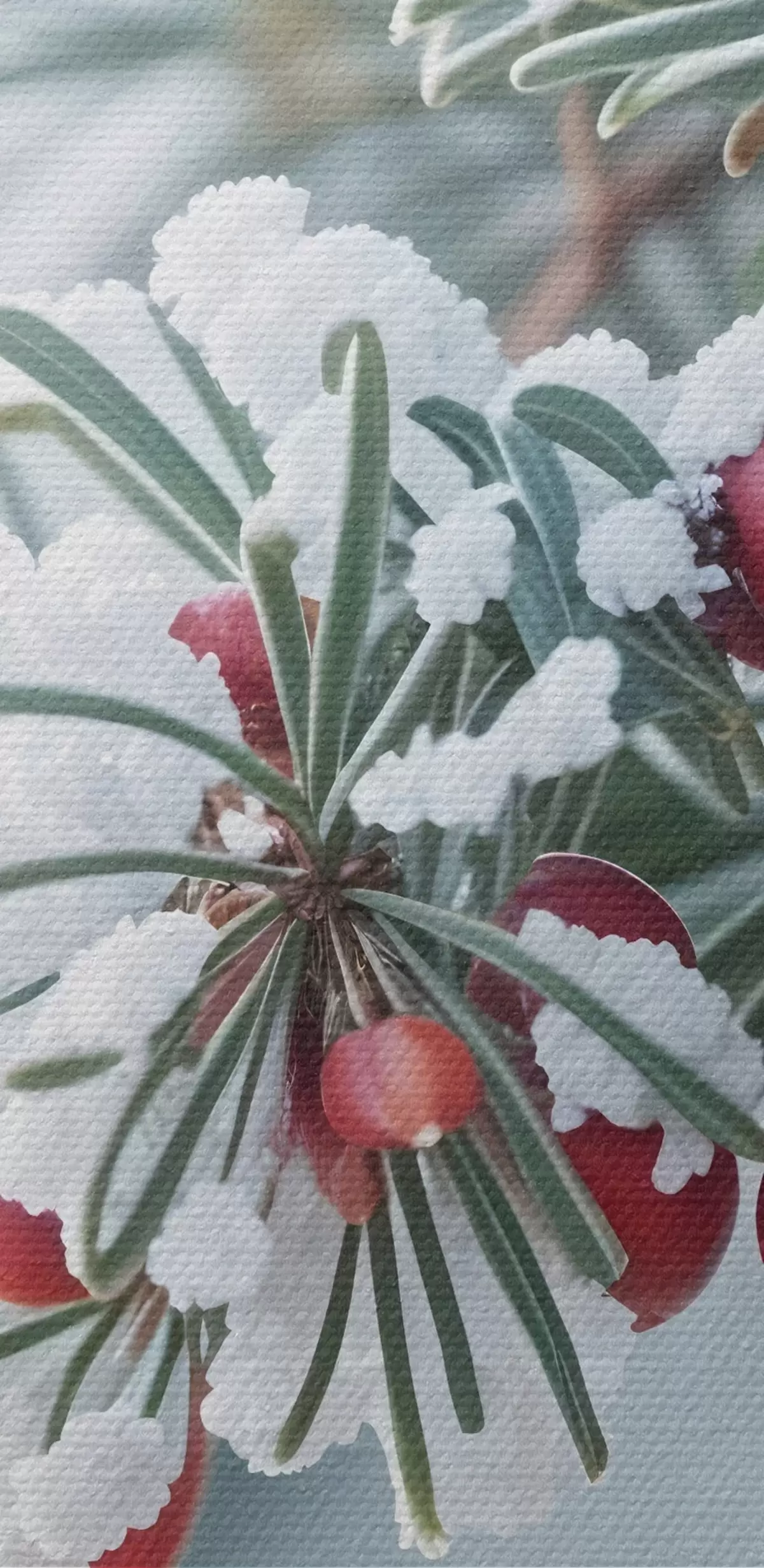 Ronde schilderijen Besneeuwde dennentak met rode bessen , winterscène Nr r42238