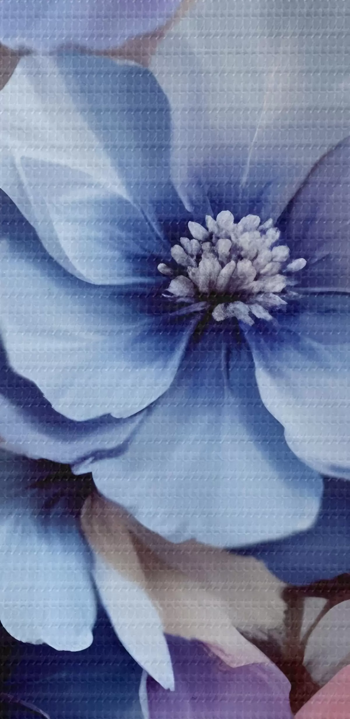 Ronde schilderijen Delicate blauwe en roze bloemen met zachte bloemblaadjes en hartjes, gerangschikt in een prachtige bloemenprint op een lichte achtergrond Nr r42241