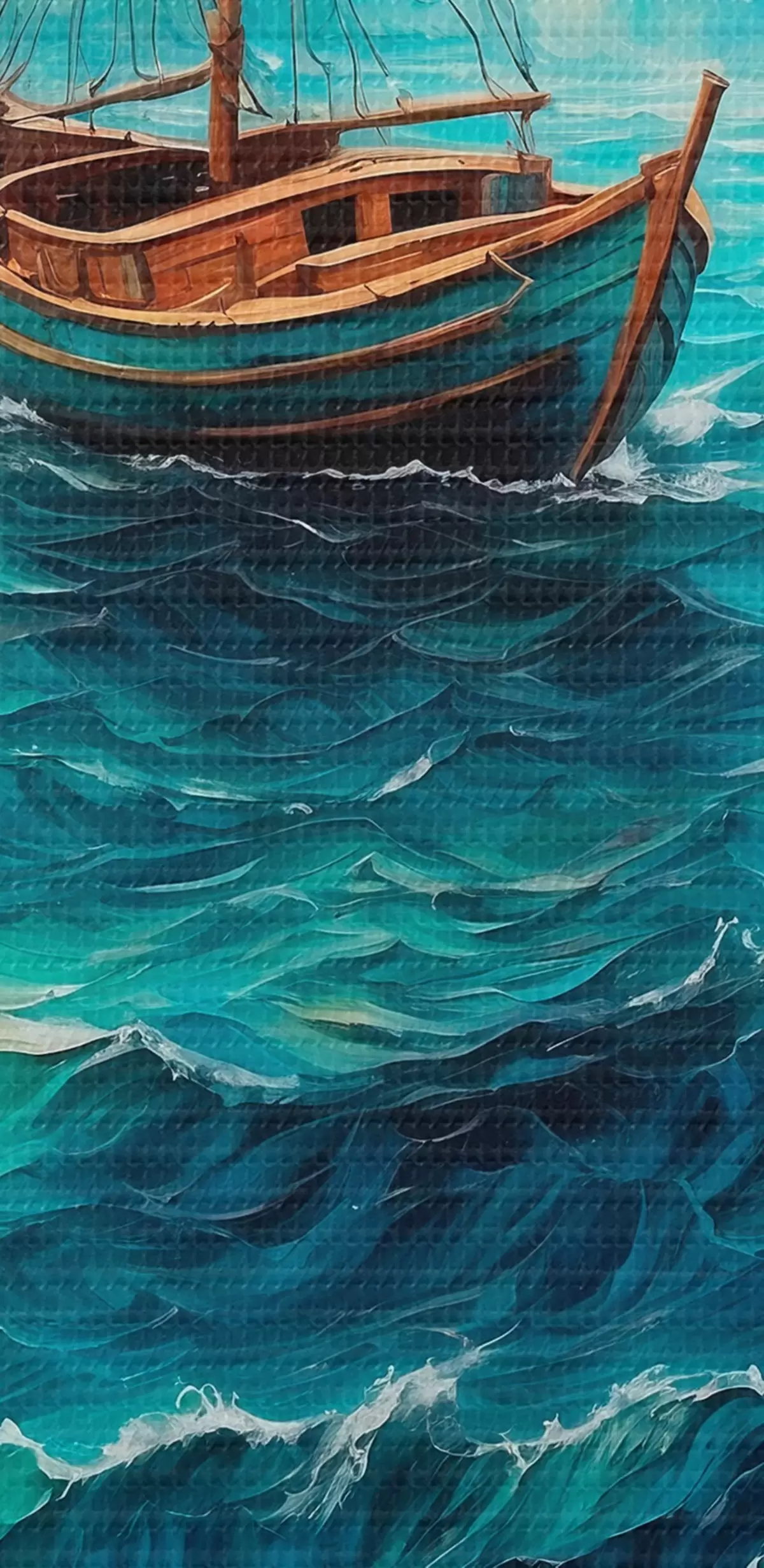 Ronde schilderijen Schip vaart op een woeste zee Nr r42250