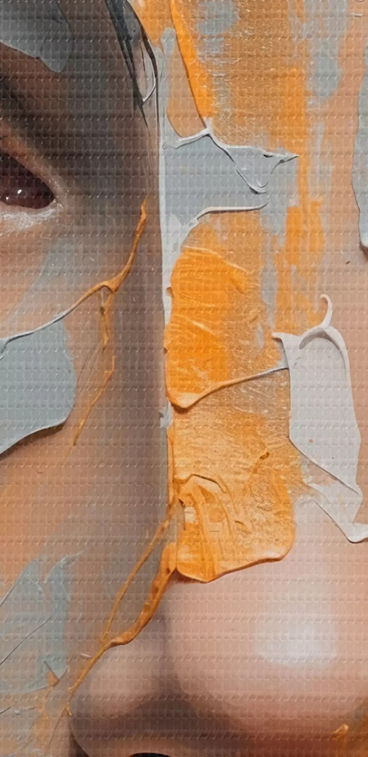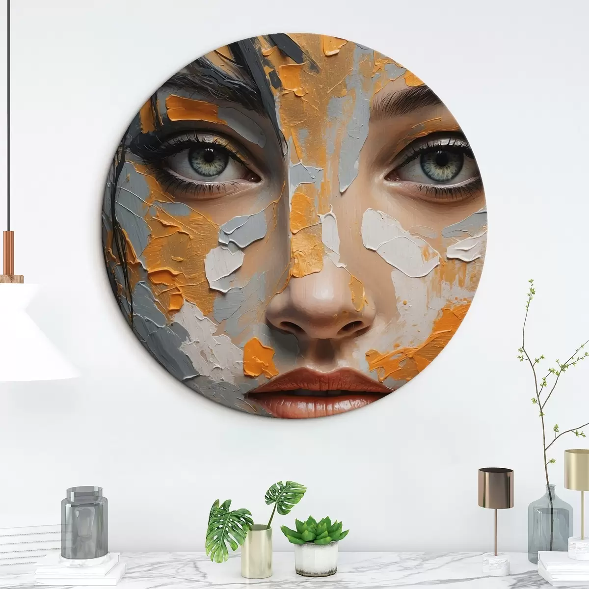 Ronde schilderijen Meisjesgezicht met witte en gele verf Nr r42259