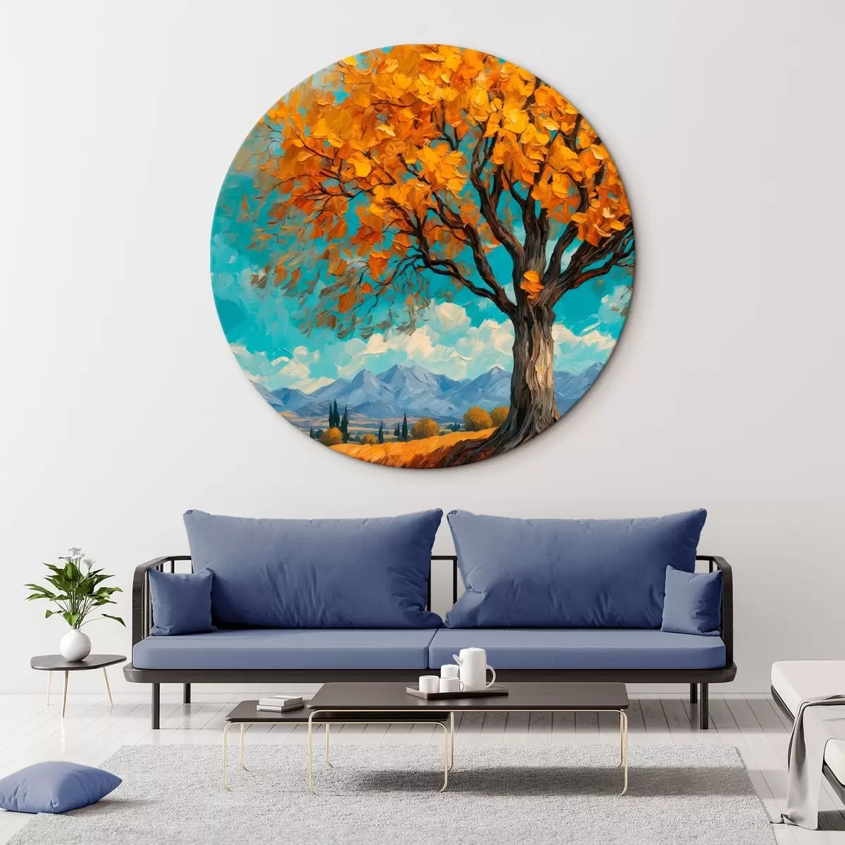 Ronde schilderijen Boom op de top van een heuvel Nr r42263