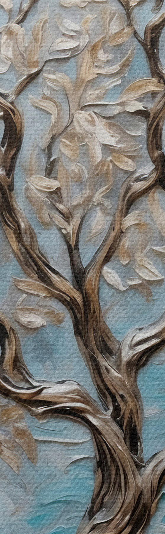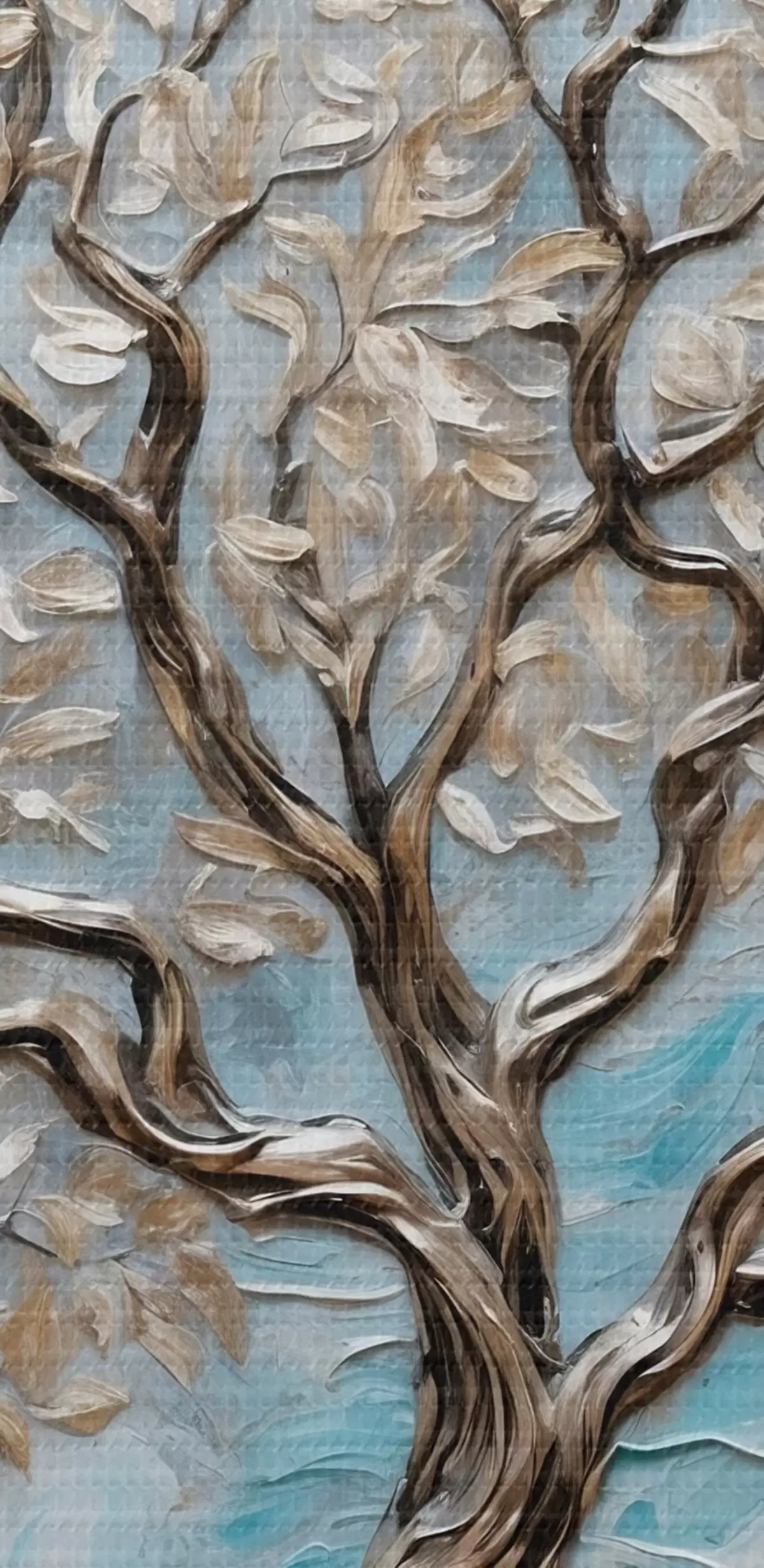 Ronde schilderijen Zilveren boom op blauwgrijze achtergrond Nr r42273
