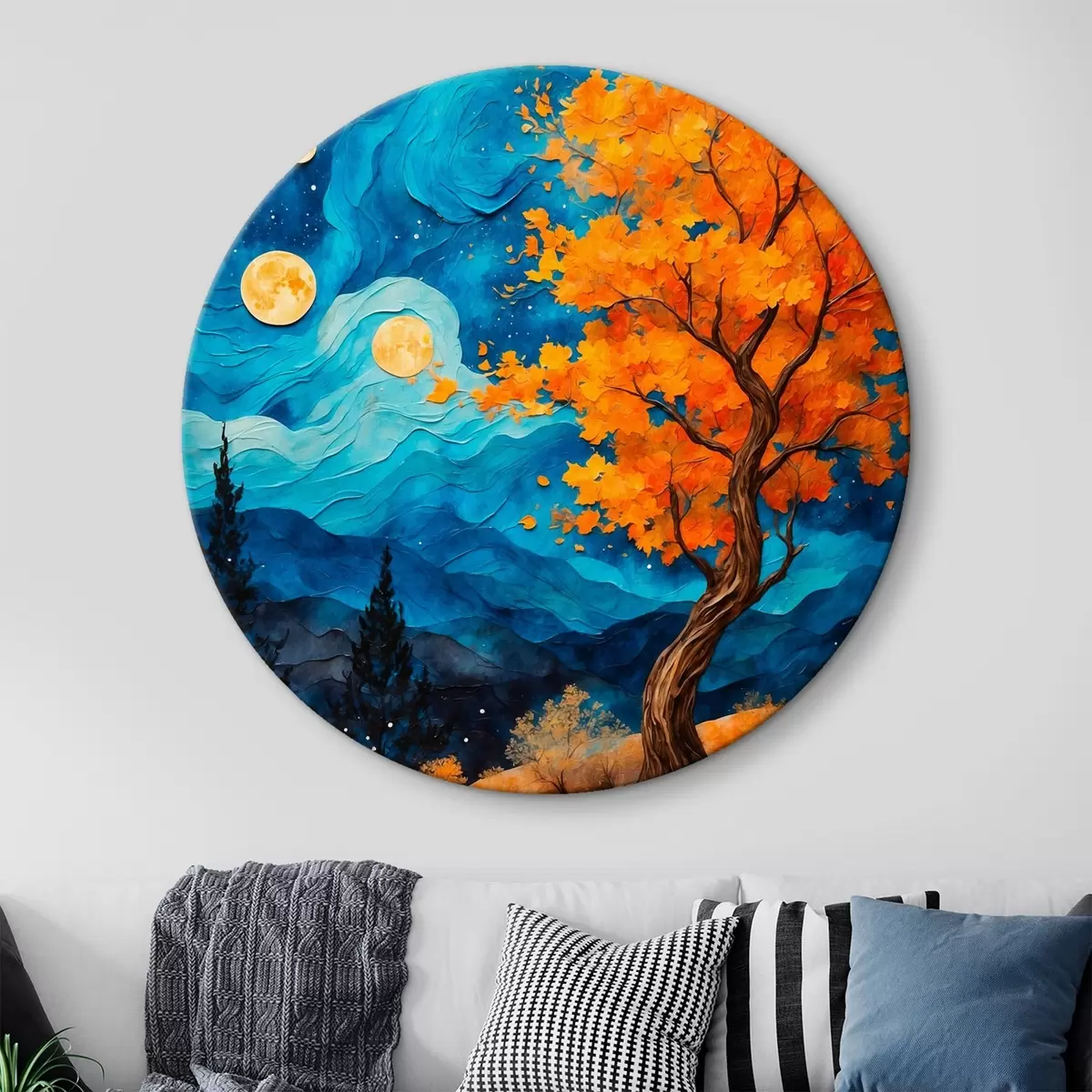Ronde schilderijen Boom die 's nachts op een heuvel groeit Nr r42274