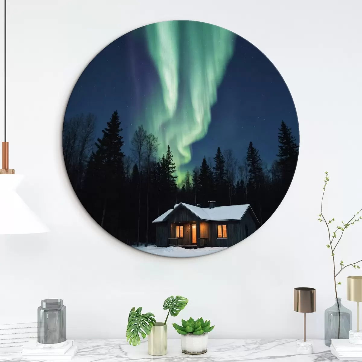 Ronde schilderijen Hut in winters bos Nr r42277