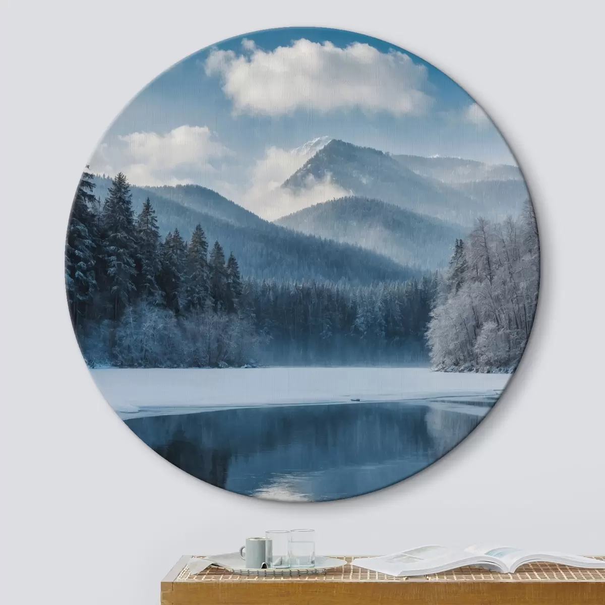 Ronde schilderijen Uitzicht op winters bos en bergen Nr r42278