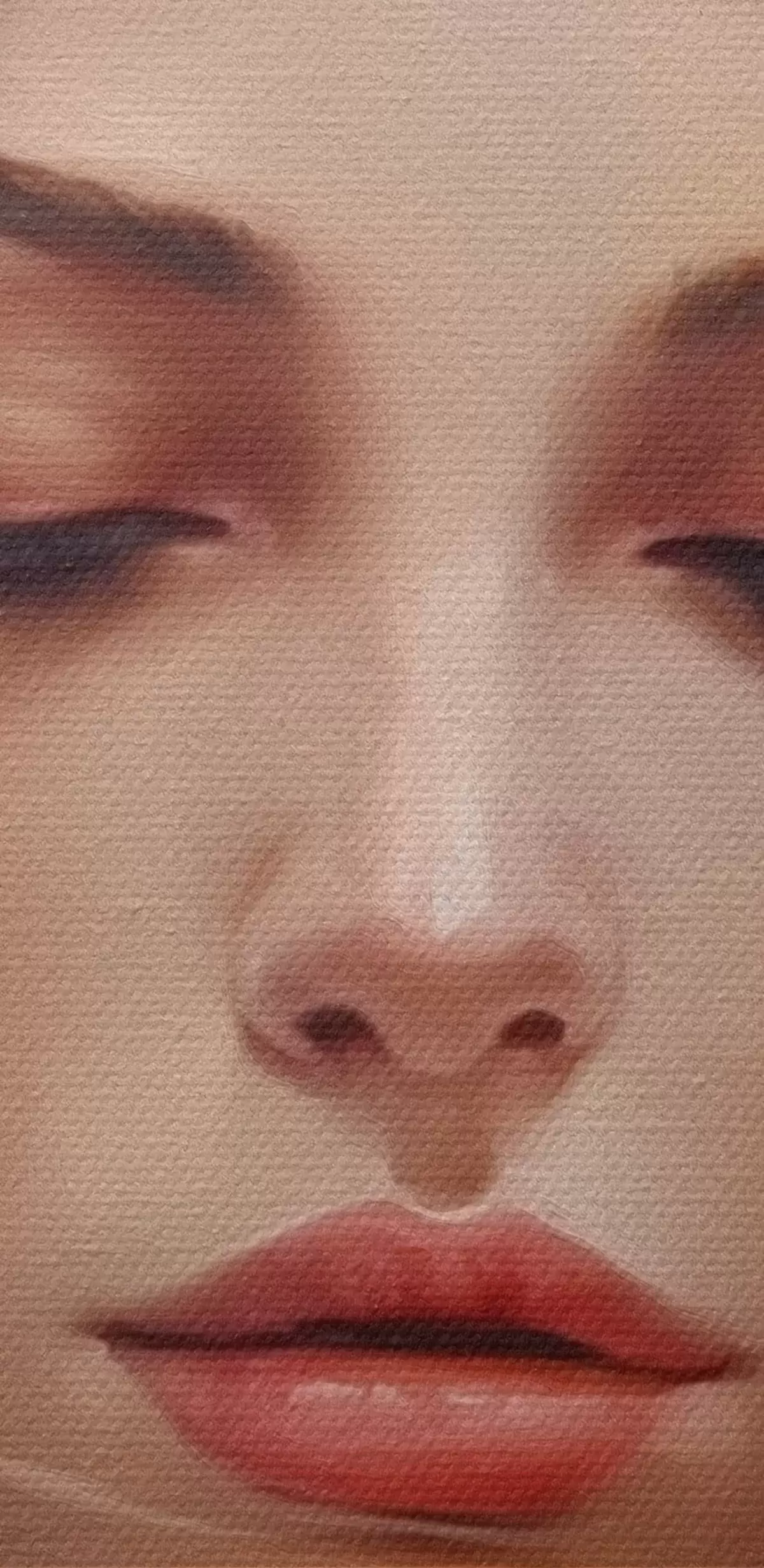 De fijne weving van draden op dit doek lijkt op het oppervlak van professionele schildersdoeken.