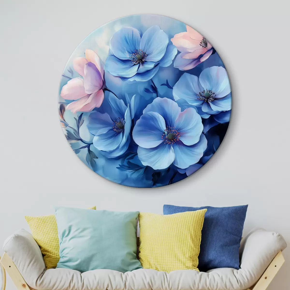 Ronde schilderijen Blauwe bloemen Nr r42332