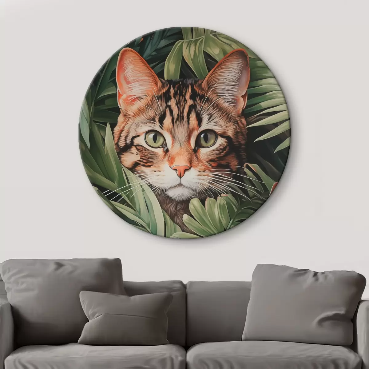 Ronde schilderijen Kat in tropische bladeren Nr r42354