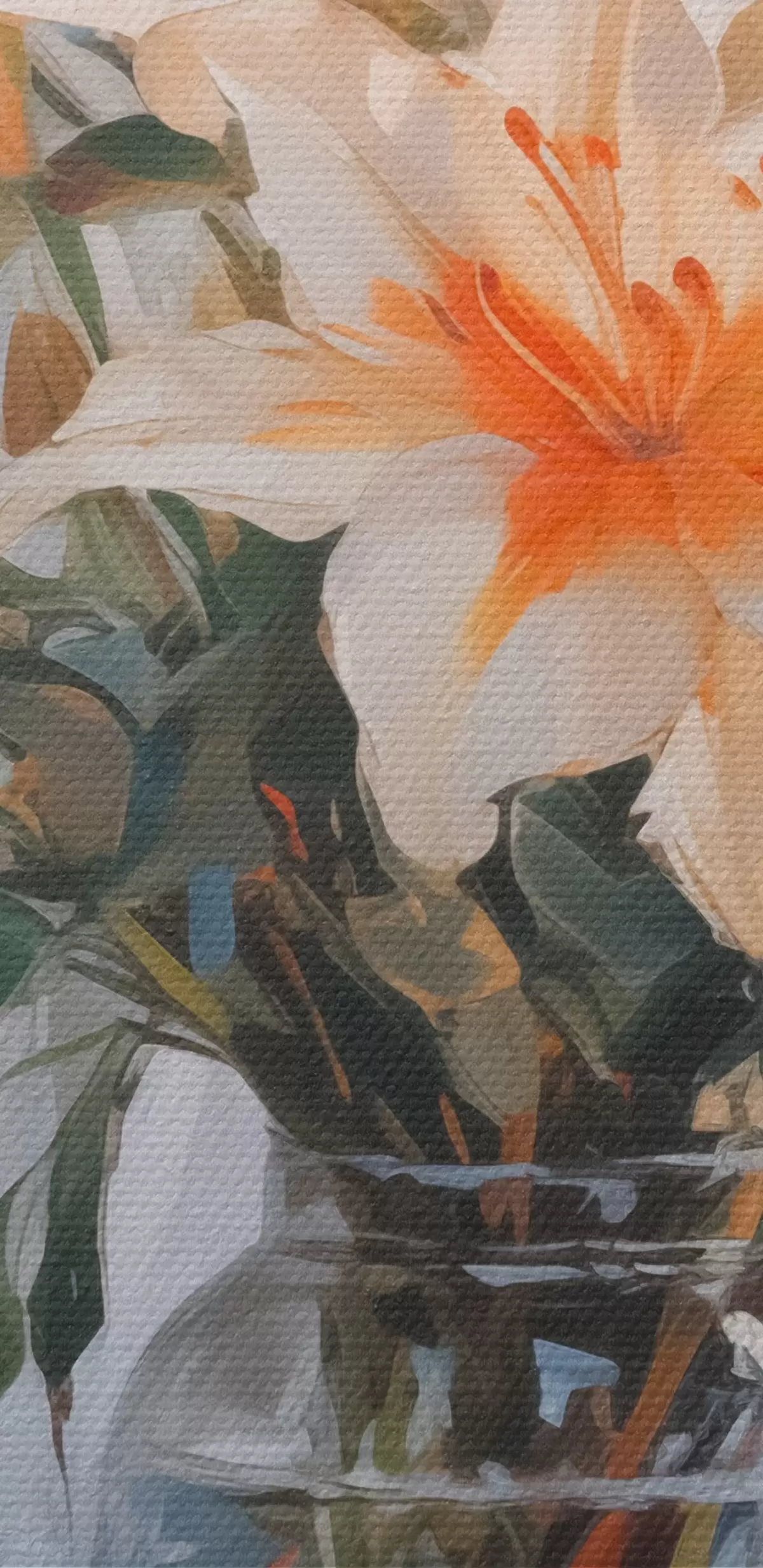 Er zijn drie soorten materiaal te bestellen: Economic Canvas - een dicht en duurzaam materiaal voor digitaal printen, identiek aan schildersdoek, waterdicht oppervlak, realistische weergave van details, materiaal met gemiddelde korrel. Premium Canvas - de textuur lijkt op die van schildersdoek (verweven kleine draden). Zachte, gedetailleerde reproductie van de afbeelding op een mat oppervlak. Eco-Premium - hoogwaardige 100% katoenen stof. Dankzij de natuurlijke katoenvezels is het materiaal duurzaam en slijtvast. Uitstekende kleurweergave en detail.