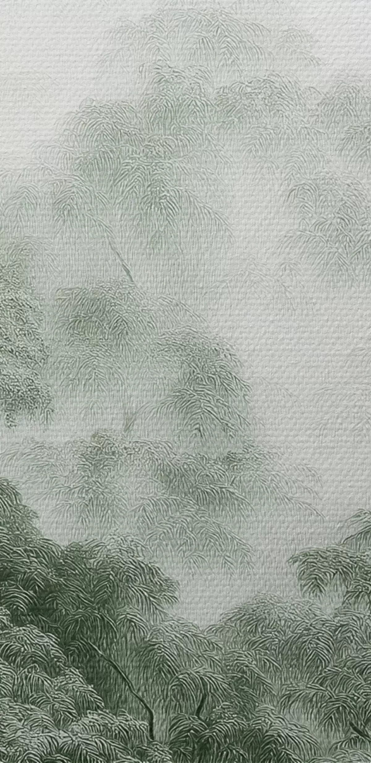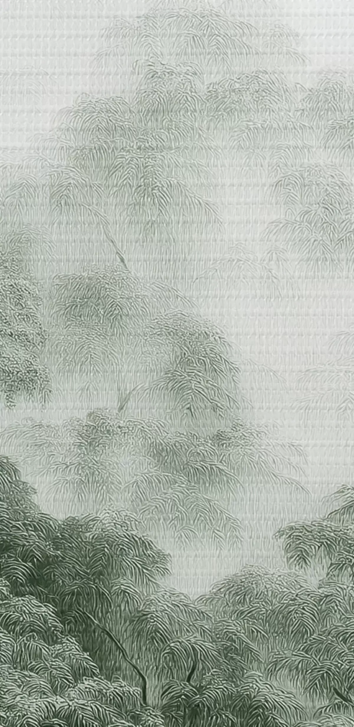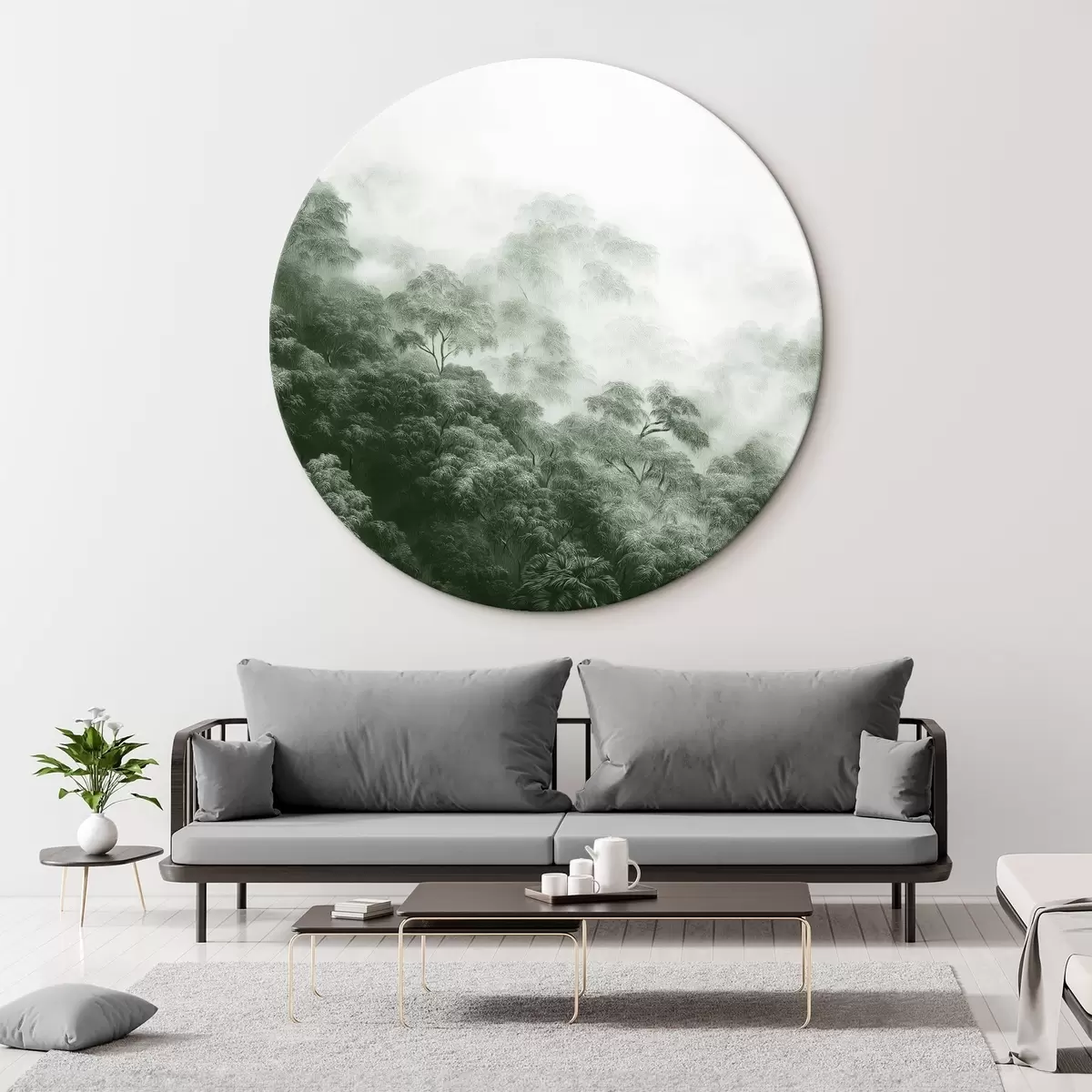 Ronde schilderijen Tropisch bos in de mist, palmbomen, groene kleuren Nr r42371