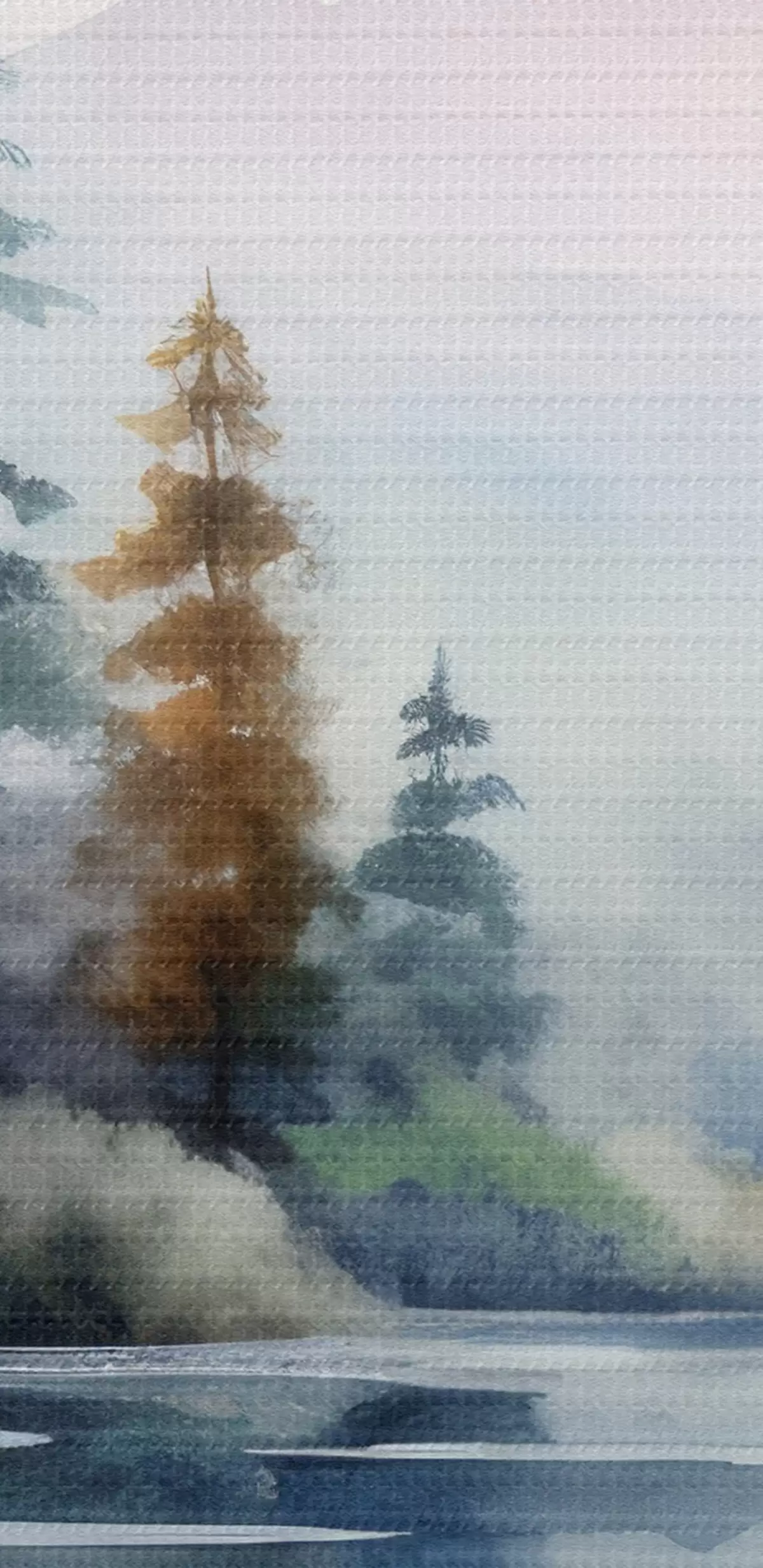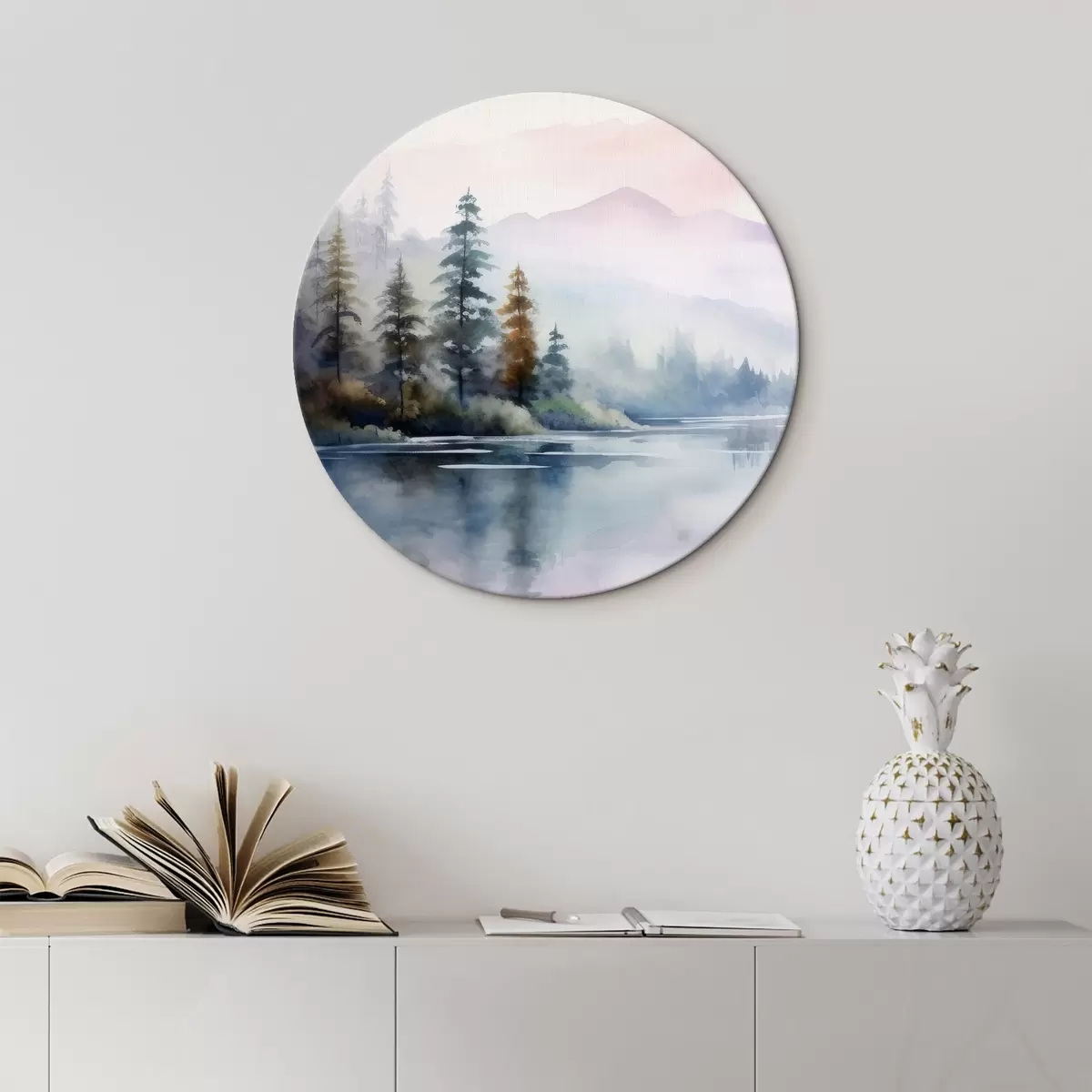 Ronde schilderijen Bos in mist tegen de achtergrond van een meer Nr r42384