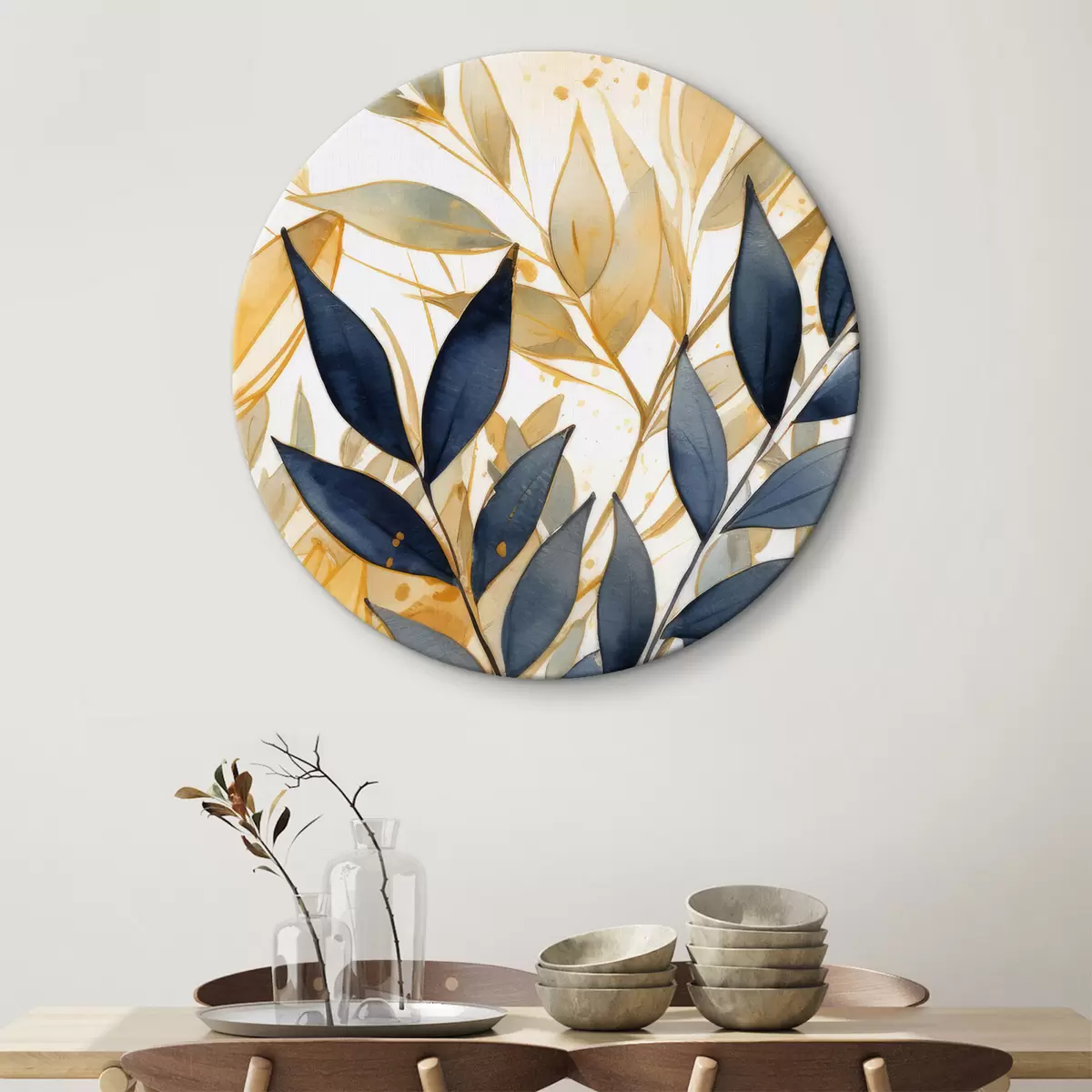 Ronde schilderijen Lichte en donkere takken op een aquarelachtergrond Nr r42394