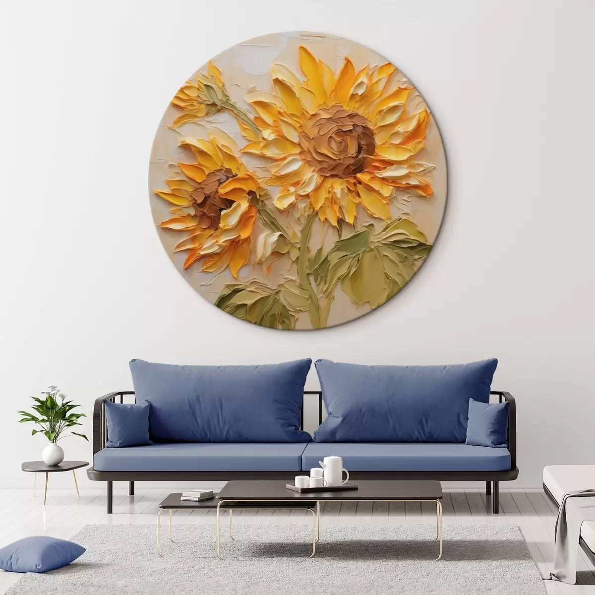 Ronde schilderijen Zonnebloemen imitatie verfstreken Nr r42411