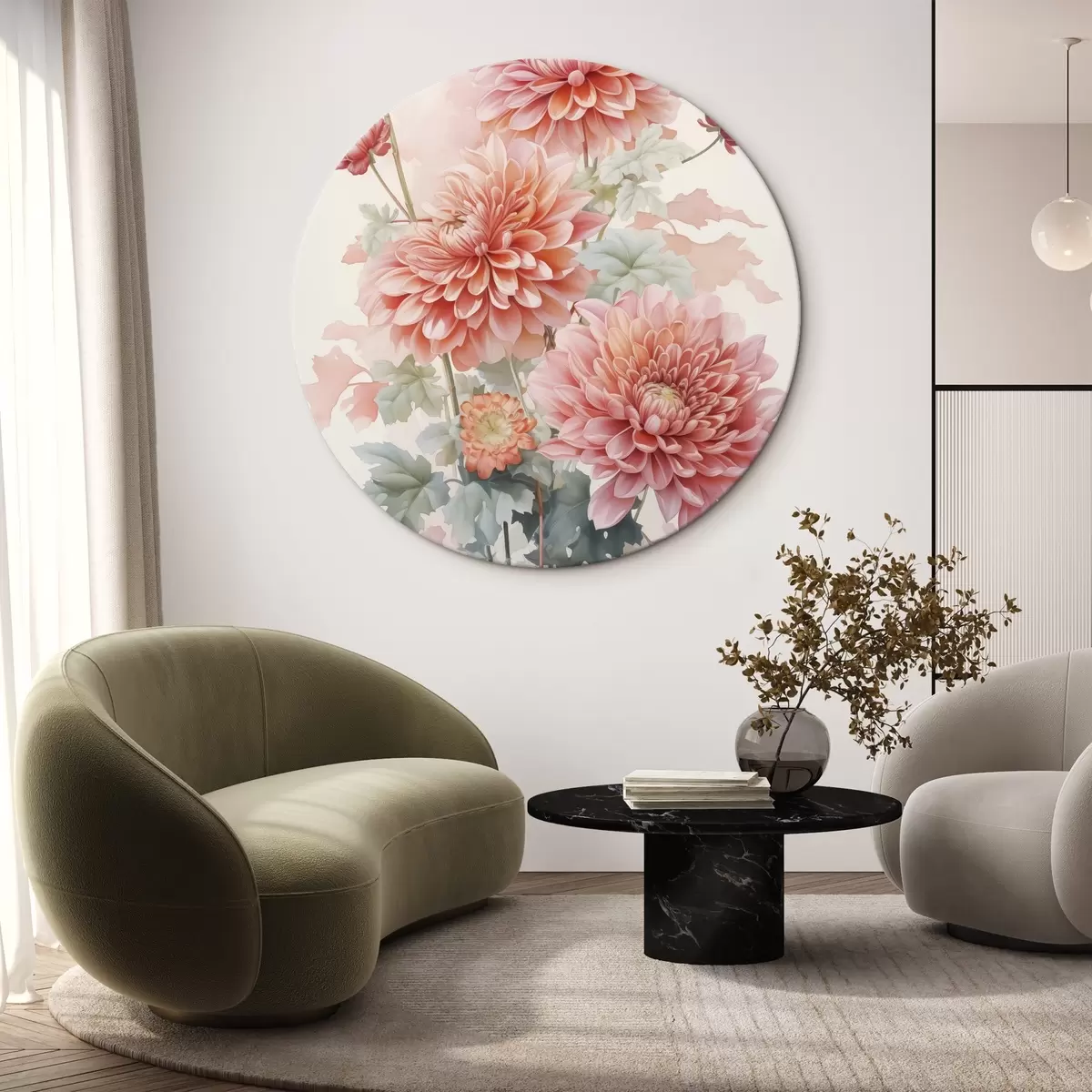 Ronde schilderijen Chrysanten imitatie van aquarel Nr r42416