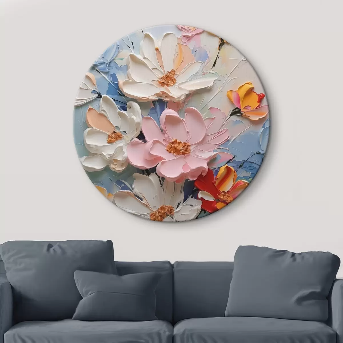 Ronde schilderijen Heldere bloemen imiteren verfstreken r42419