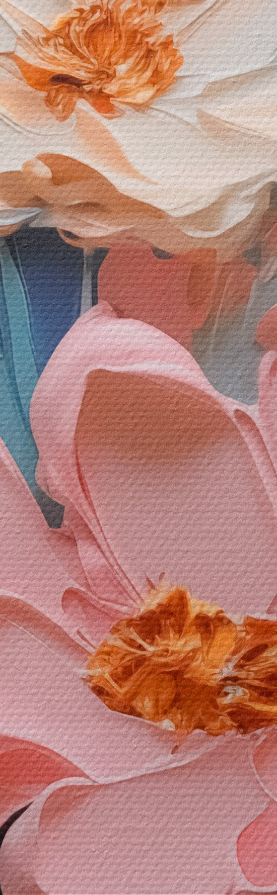 Er zijn drie soorten materiaal te bestellen: Economic Canvas - een dicht en duurzaam materiaal voor digitaal printen, identiek aan schildersdoek, waterdicht oppervlak, realistische weergave van details, materiaal met gemiddelde korrel. Premium Canvas - de textuur lijkt op die van schildersdoek (verweven kleine draden). Zachte, gedetailleerde reproductie van de afbeelding op een mat oppervlak. Eco-Premium - hoogwaardige 100% katoenen stof. Dankzij de natuurlijke katoenvezels is het materiaal duurzaam en slijtvast. Uitstekende kleurweergave en detail.