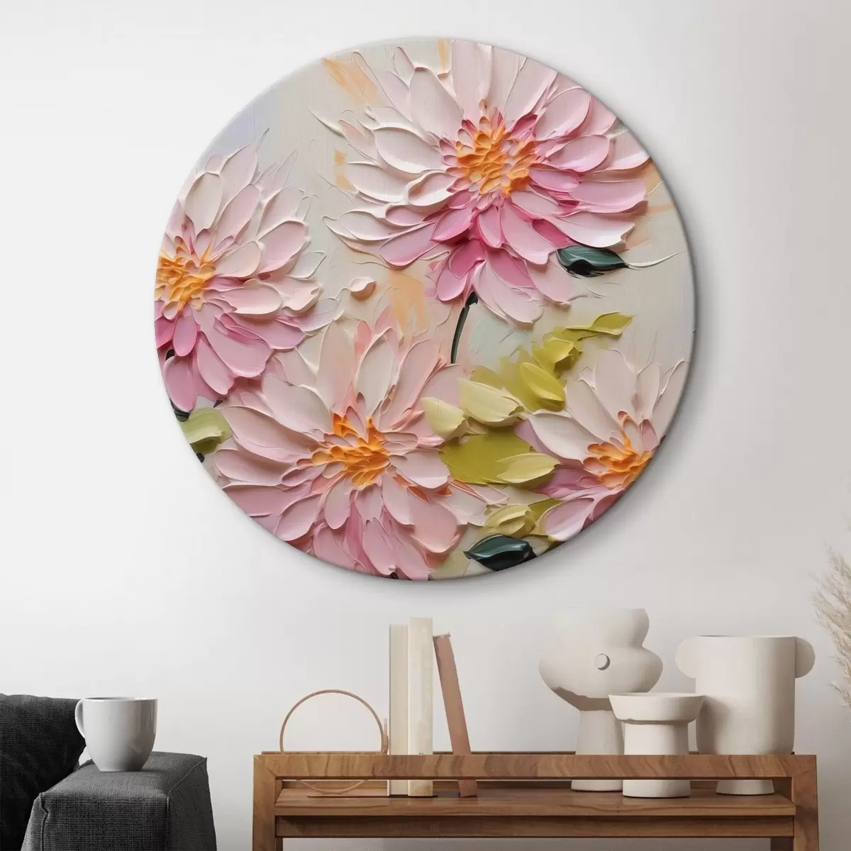 Ronde schilderijen Chrysanten imitatie van verfstreken Nr r42423