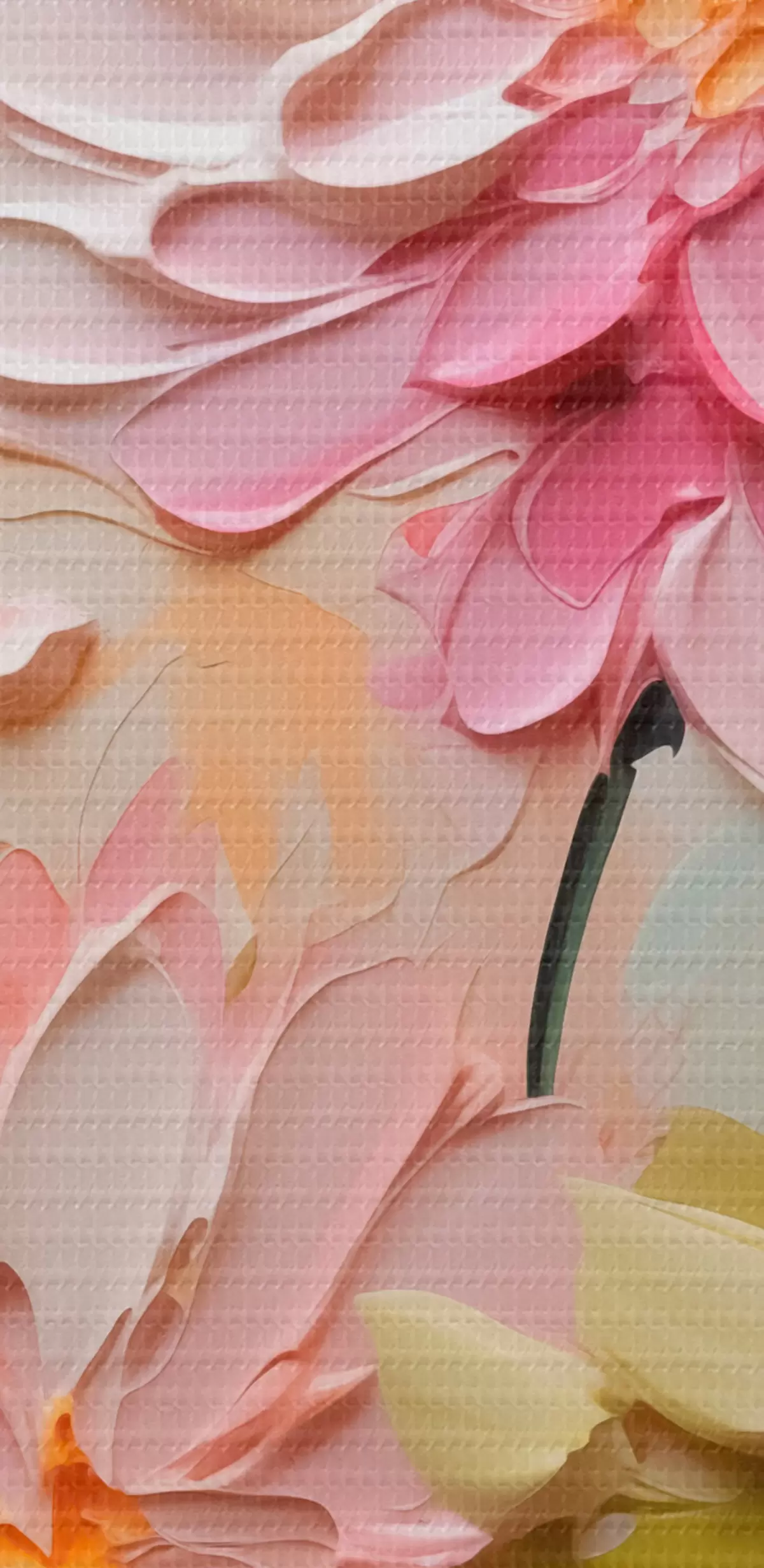 Er zijn drie soorten materiaal te bestellen: Economic Canvas - een dicht en duurzaam materiaal voor digitaal printen, identiek aan schildersdoek, waterdicht oppervlak, realistische weergave van details, materiaal met gemiddelde korrel. Premium Canvas - de textuur lijkt op die van schildersdoek (verweven kleine draden). Zachte, gedetailleerde reproductie van de afbeelding op een mat oppervlak. Eco-Premium - hoogwaardige 100% katoenen stof. Dankzij de natuurlijke katoenvezels is het materiaal duurzaam en slijtvast. Uitstekende kleurweergave en detail.