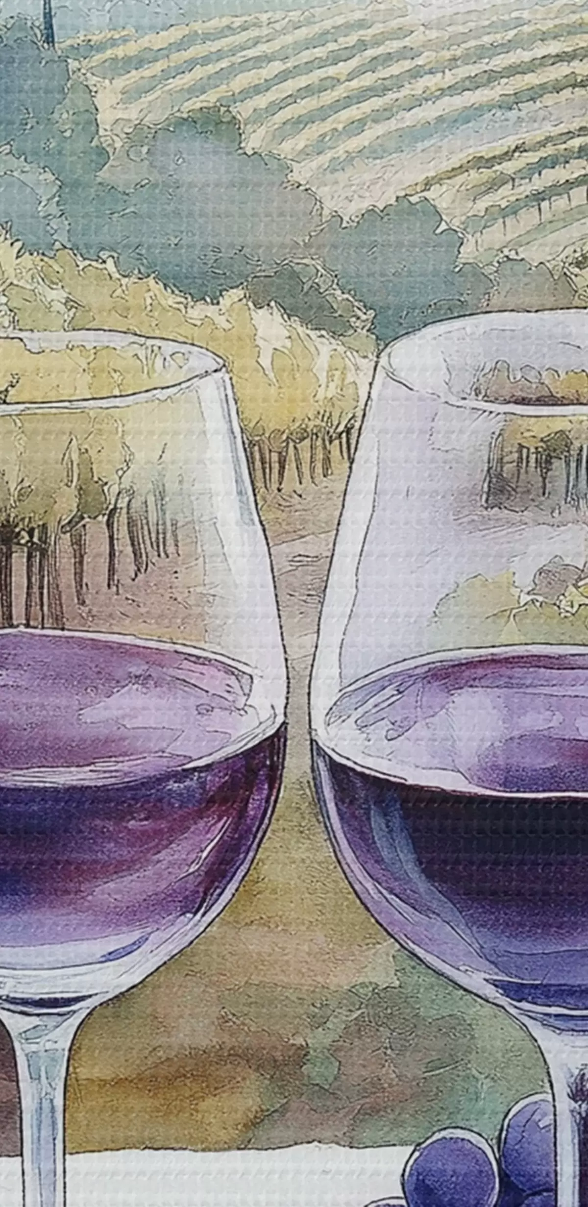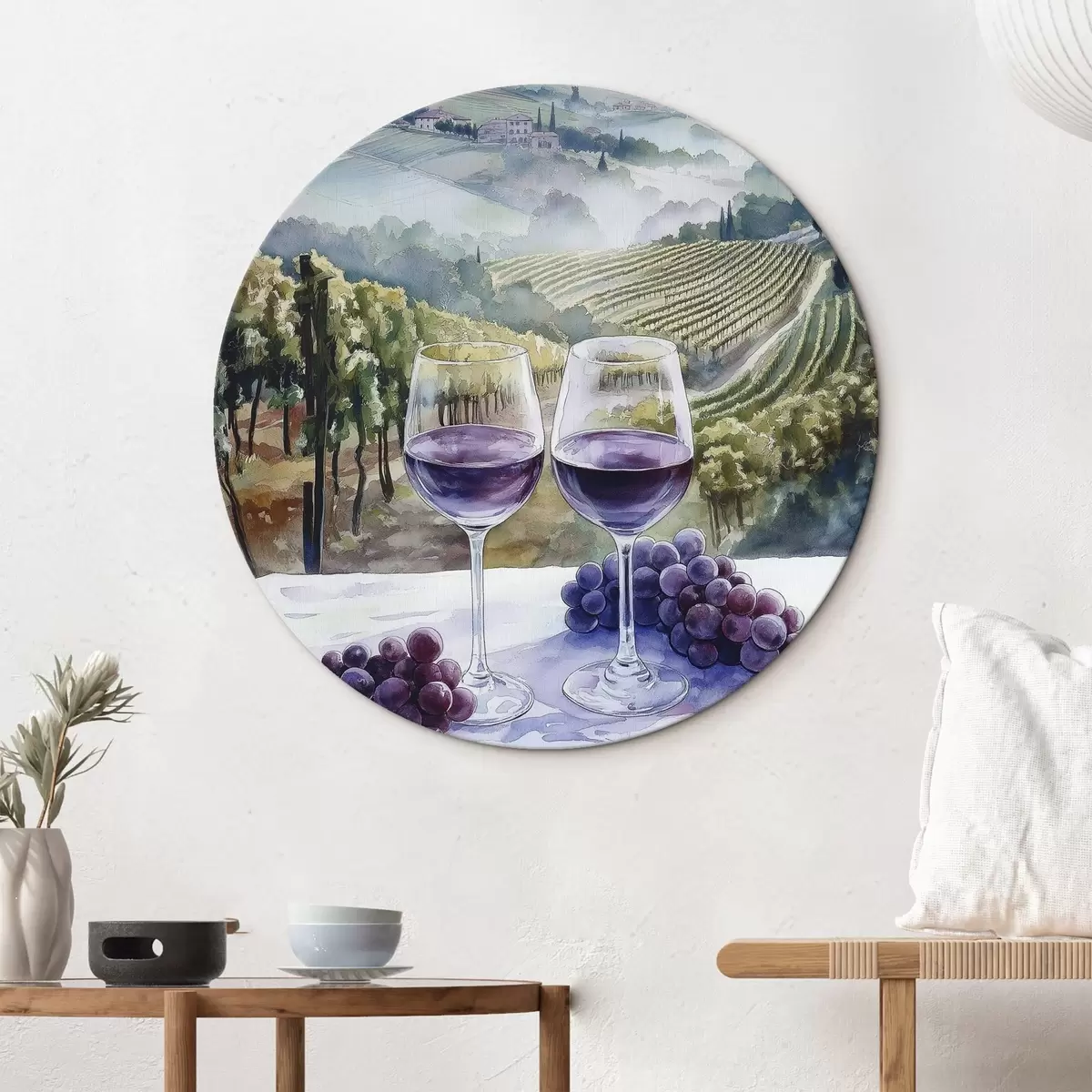 Ronde schilderijen Aquarel stijl Toscane landschappen, wijngaarden, druiven r42440