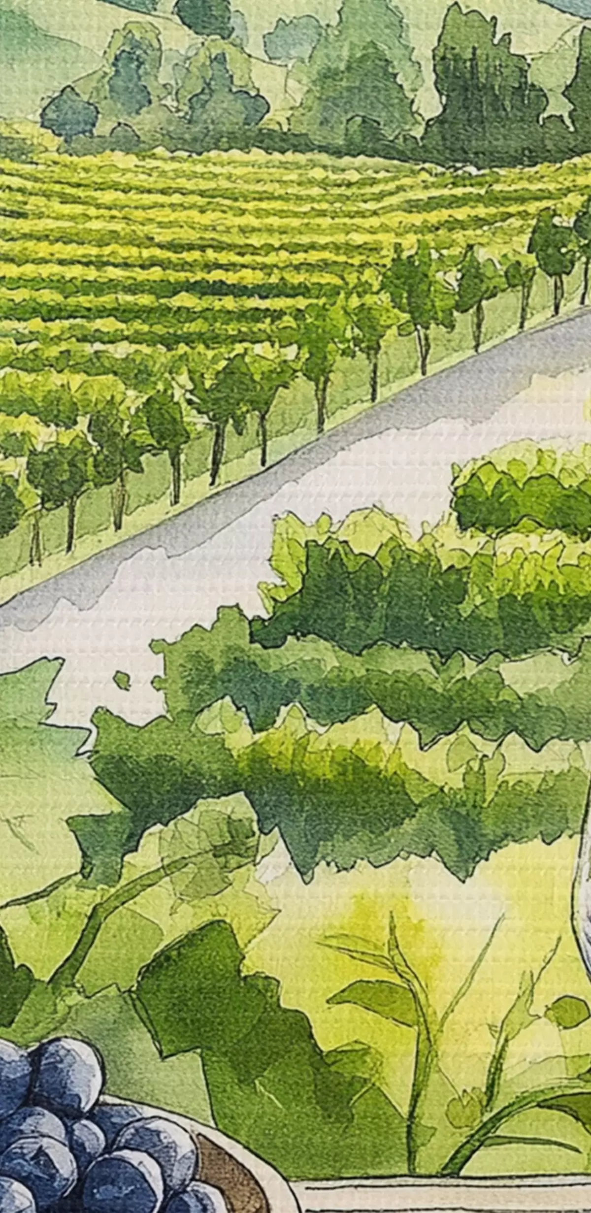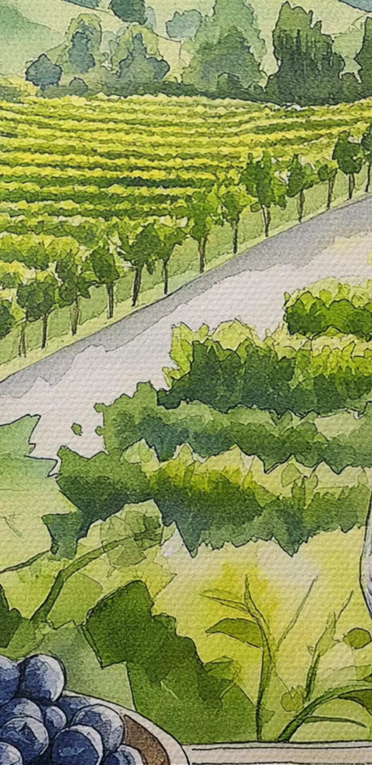 Ronde schilderijen Gpape werven, aquarel stijl landschappen, wijnglazen r42444